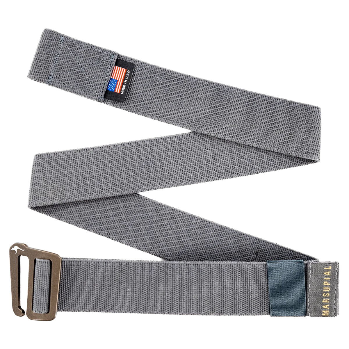 With Marsupial's specially formulated stretch webbing, this belt is the perfect mix of comfort and durability. The stiff 1.5" webbing has a slight stretch embedded in it, allowing the belt to maintain a tight fit through the most rigorous activities. Marsupial's custom hook buckle allows easy on-and-off operation, so no more messing with weaving webbing through traditional tension belt buckles. Rugged enough for the outdoors and sharp enough for the office.