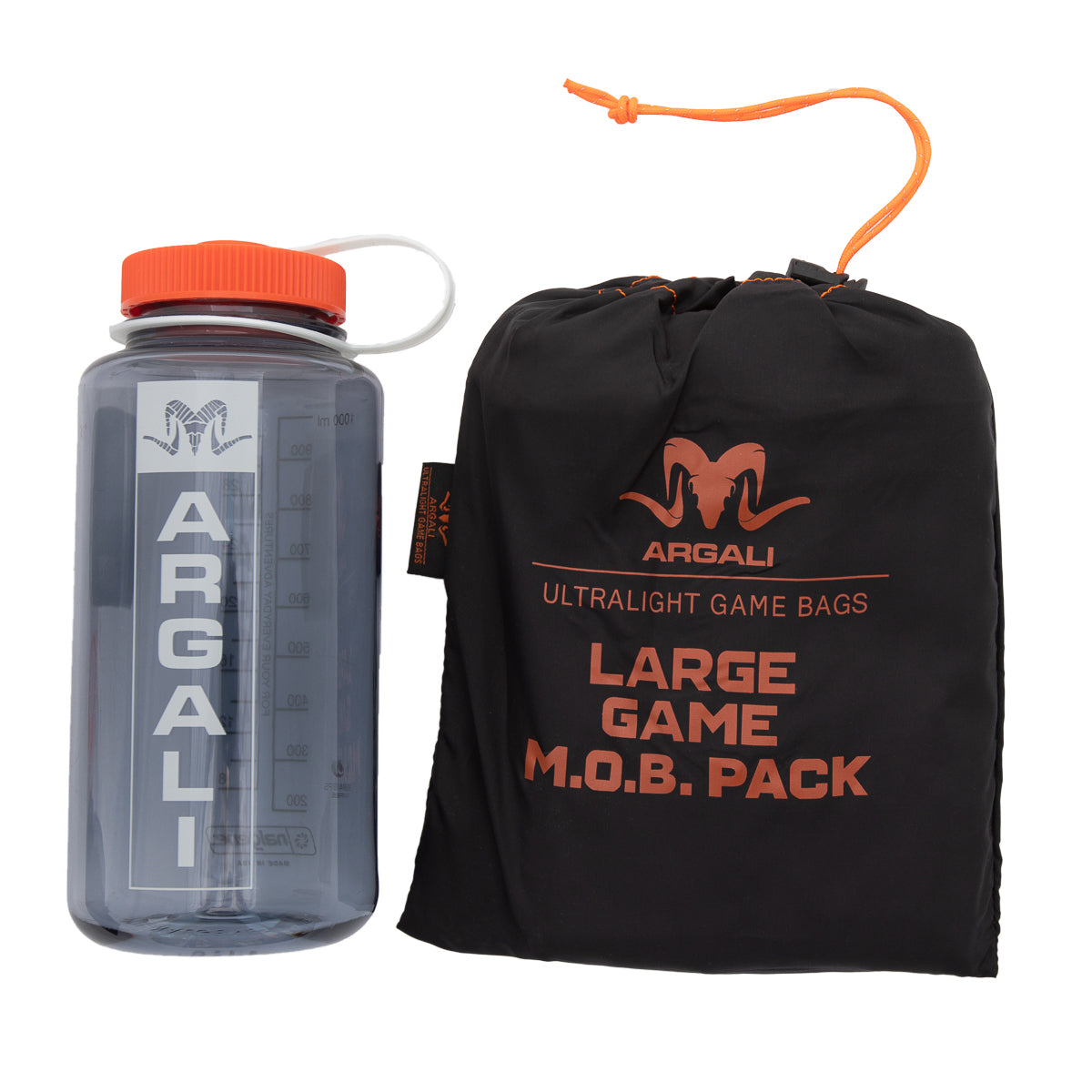 Argali's M.O.B. Pack is an ultralight set of game bags meant to pack out entire elk or caribou quarters with meat on the bone. Weighing in at only 15 oz with the stuff sack and able to hold an entire elk, the M.O.B. Pack is an easy addition even for the ounce counting backcountry hunter. It's made from durable yet breathable nylon that not only allows you to protect that precious meat, but they're also washable so you can reuse them year after year. Sewn-in webbing loops make hanging your full game bags easy while reflective logos and paracord make them easy to spot even on the darkest nights. Argali game bags are backed by a 100% satisfaction guarantee.