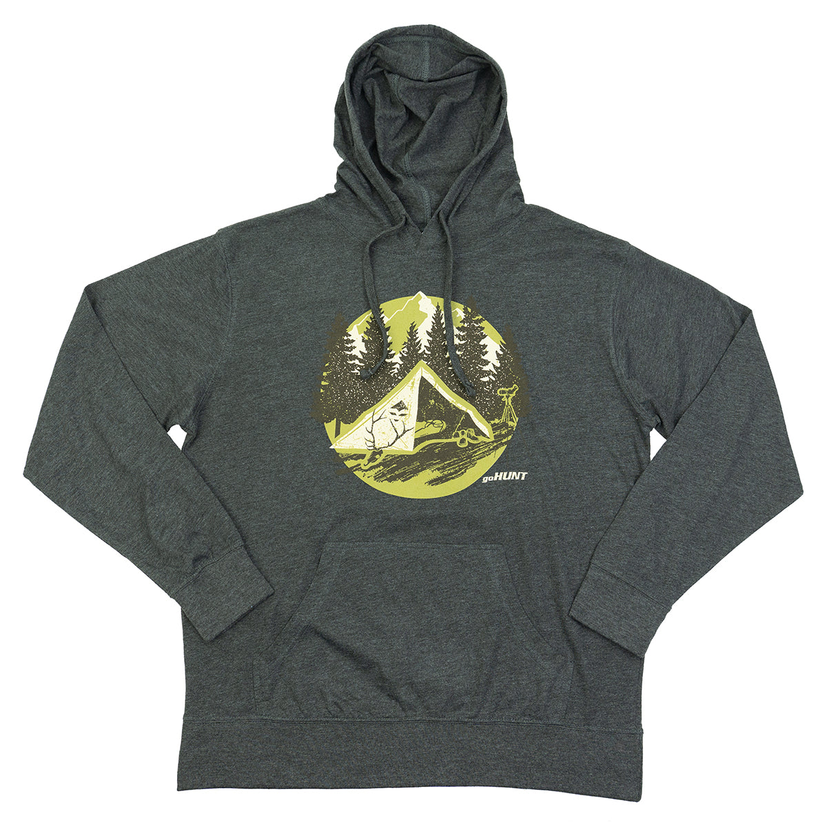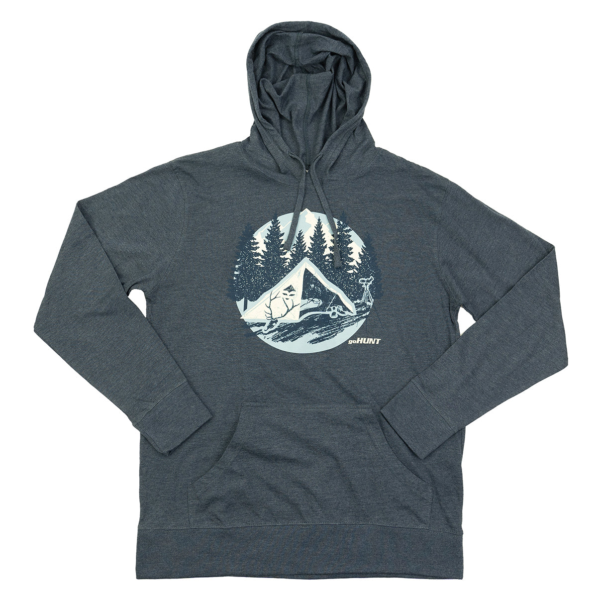 The Lightweight Wilderness Hoodie has a slimmer, t-shirt like fit and is made from a 60/40 cotton/polyester blend. These hoodies are lightweight which makes them perfect for use indoors or when it is just a bit too cold for a t-shirt. The kangaroo pouch on the front gives you a place to keep your hands warm or store personal items. The artwork on the front of the hoodie will bring back memories of past hunts and or future ambitions to get you excited for any upcoming hunts you may have.