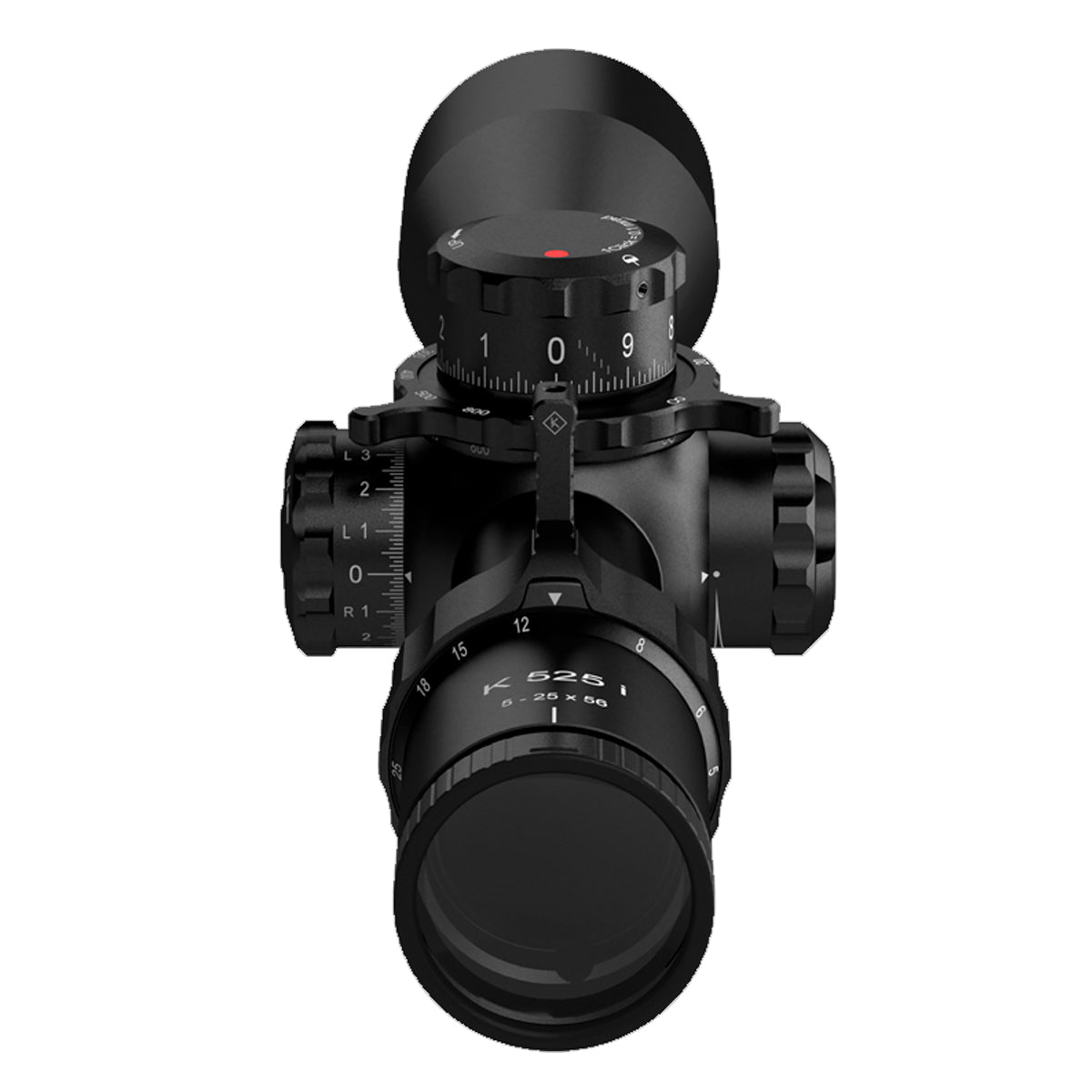 The K525i combines maximum optical performance and precision with unique handling and ergonomics. The DLR variant is optimized for the fast action nature of Dynamic Long Range competitions. It features extended field of view, easy to read clicks, extralong throw lever and parallax spinner.