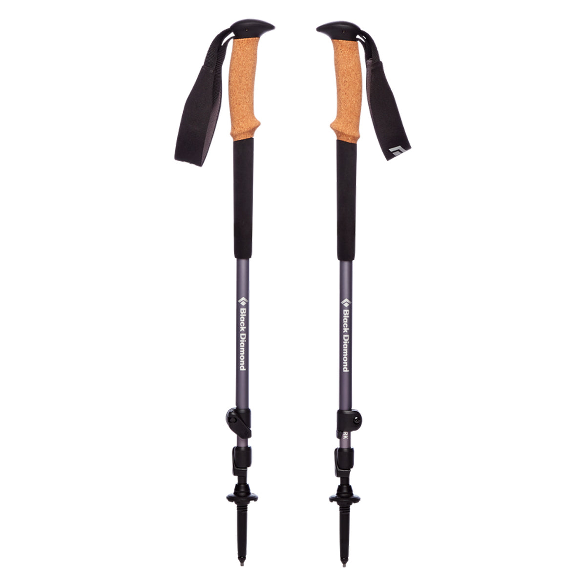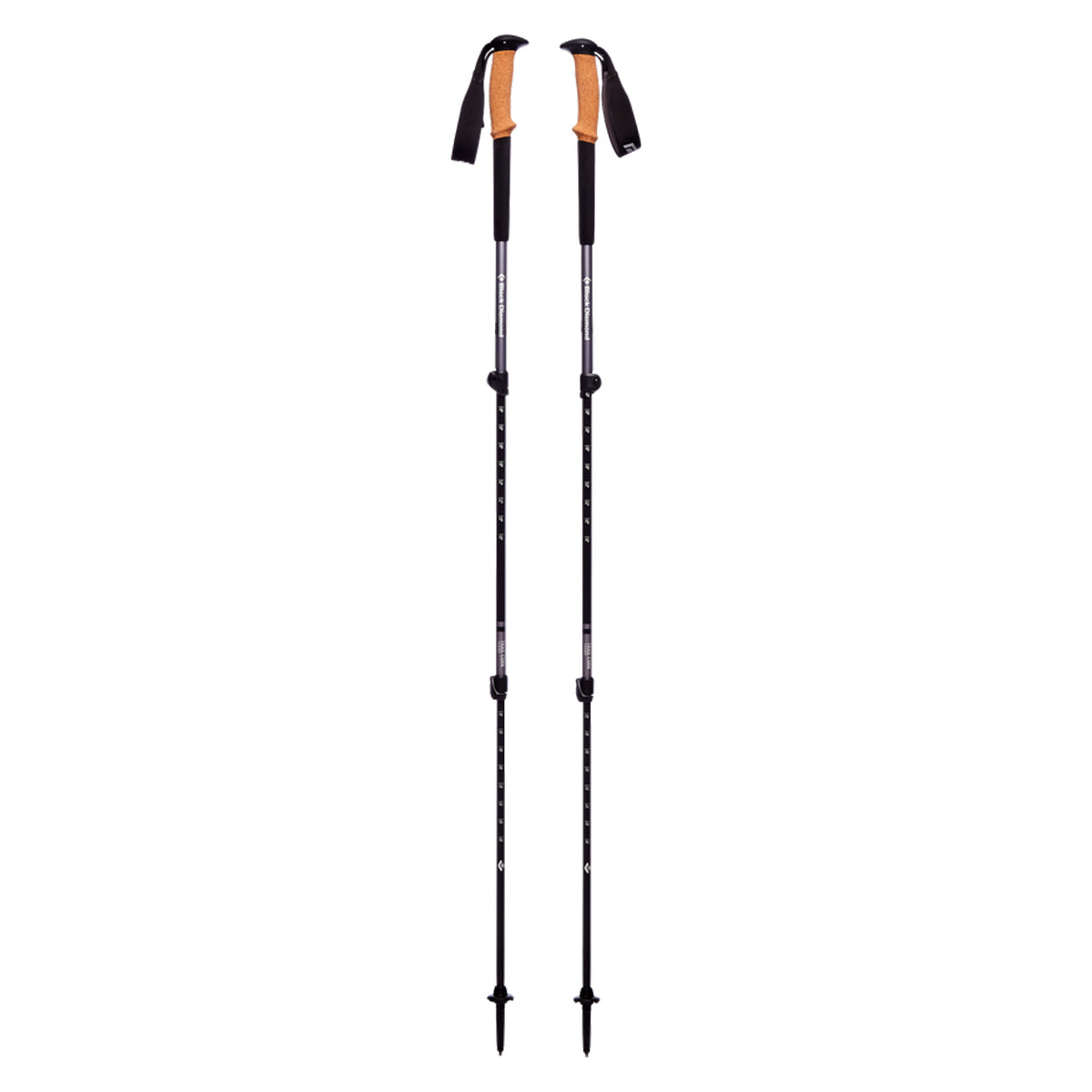 The Black Diamond Trail Cork trekking poles are built for 4-season versatility and expertly balances comfort, features, and durability. The premium 100% natural cork grip is designed for ultimate comfort while the dual FlickLocks offer complete adjustability to suit the terrain. Black Diamond interchangeable carbide tech tips can be swapped out for rubber tech tips (sold separately) to accommodate changing trail surfaces. Trekking baskets and snow baskets are included with the poles to give you 4-season versatility. The 7075 aluminum shafts are extremely durable to put up with heavy pack out ascents/descents.