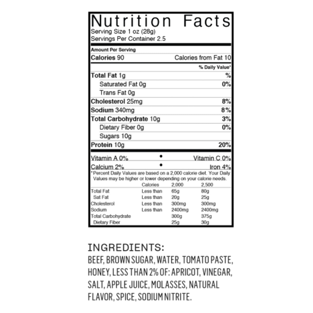 The perfect balance of sweet and smokey — this jerky will change your life. Perfect for those looking for fuel-on-the-go and in need of a tasty yet healthy protein snack. Prepared the way it was always intended- with slices of 100% premium beef, slow-cooked to perfection in small batches using real wood smoke.