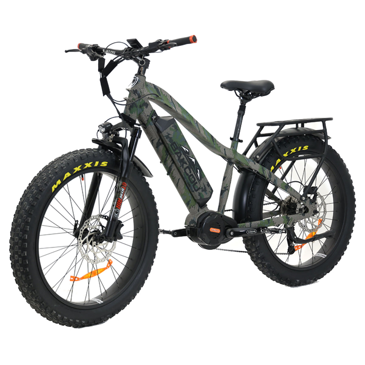 The Mule eBike is made for heavy pack outs featuring the Bafang G620 Ultra motor, front suspension, and 26" fat tires.