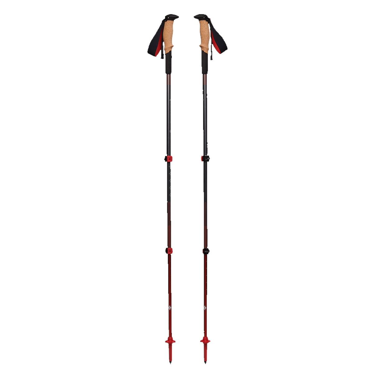 Packed with comfort-focused features like ergonomic cork grips and Bloom grip extensions, plus our uniquely designed, streamlined shock, the Pursuit Shock is a premium pole option for any hiker. Black Diamond Pursuit Shock Trekking Poles have proprietary grip geometry and shape, with two grip sizes optimized for larger and smaller hands, making for more comfortable hand positions as well as reducing hand fatigue. Natural cork grips manage moisture while extensions – made from Bloom, an algae-infused foam – provide additional hand positions on steep ascents. Hidden beneath the grip and the grip extension is a newly designed shock system that dampens vibrations to help reduce joint pain. Also included are Solution 2.0 wrist straps, made from post-consumer recycled fibers, and a thoughtfully-designed, soft-touch FlickLock+ for quick and easy adjustments.