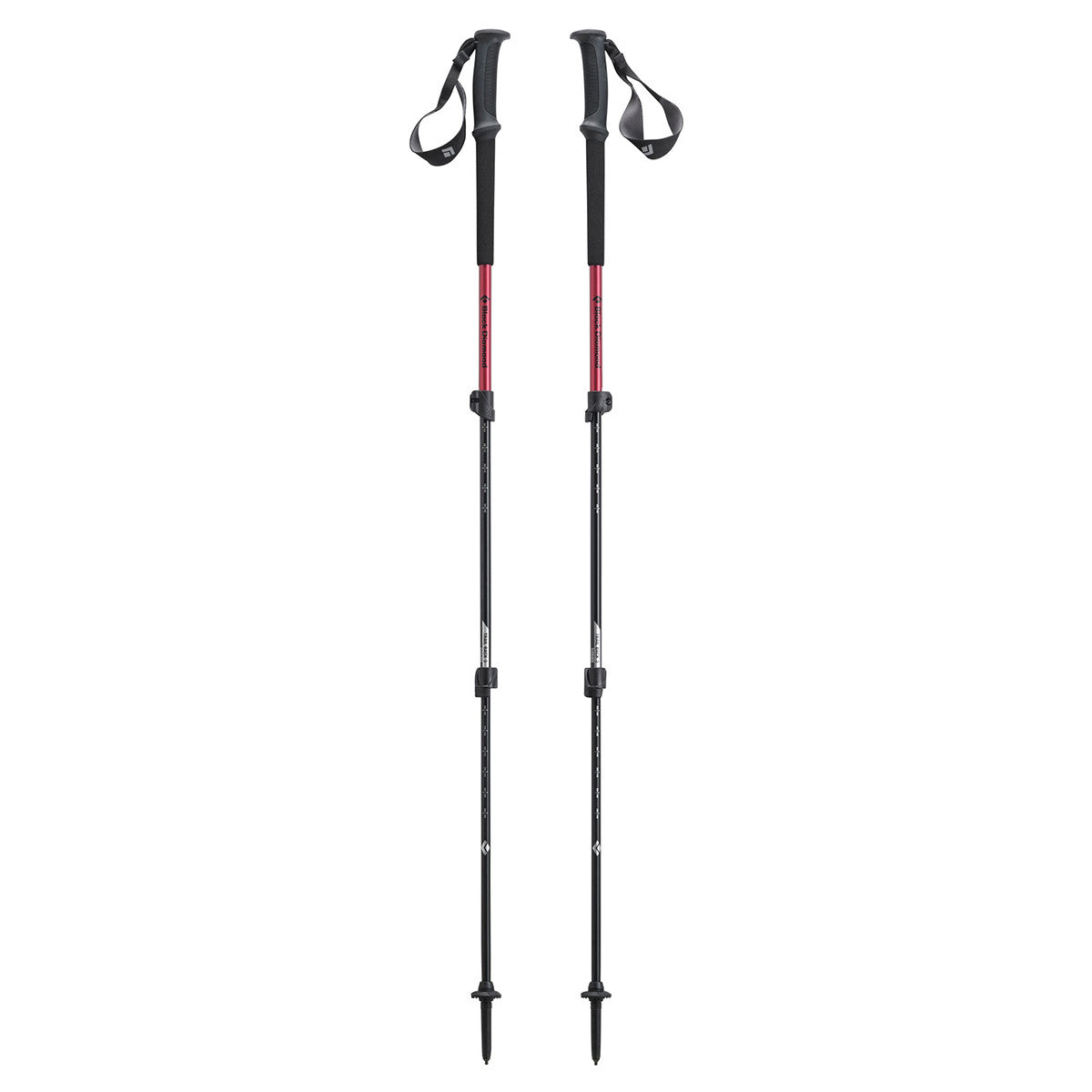 This no-frills, three-section pole, the Black Diamond Trail Back Trekking Pole provides reliable stability and easy adjustment for any on-trail adventure. Dual FlickLocks provide total adjustability to suit the terrain at hand. These are very comfortable with a rubber grip with a rib pattern to reduce vibration with a non-slip EVA foam grip extension along with the Vari-width nylon webbing strap with woven lining.