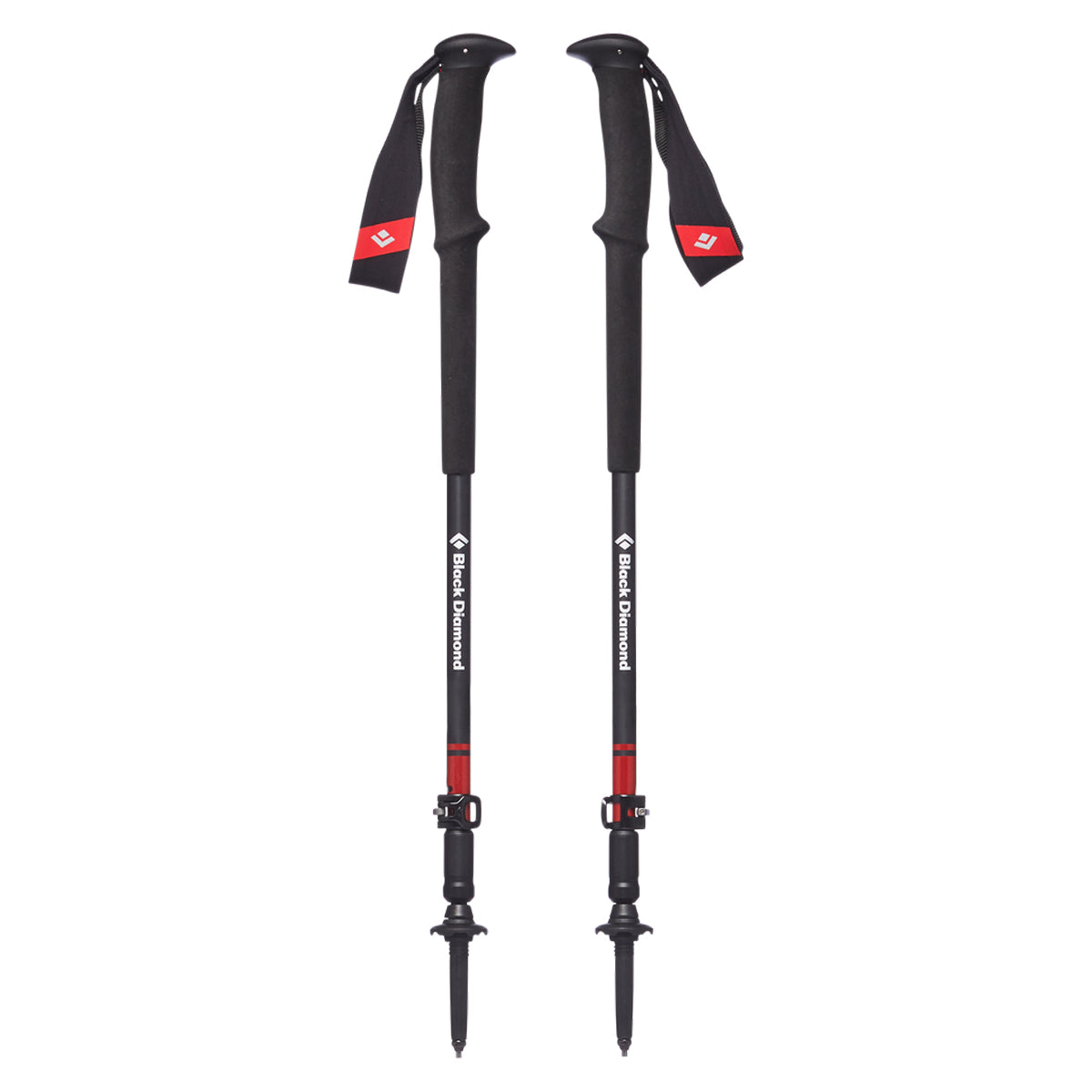 PointsBackcountry adventures involve bushwhacking and exploration. Moving through tough terrain will certainly slow you down, but it shouldn't make you turn around. Power through rough spots like a champ with the Black Diamond Trail Pro Trekking Poles. The Trail Pro features a tough aluminum shaft and the return of the Black Diamonds stellar FlickLock Pro extension system, made of stainless steel to increase clamping force and durability. Whatever terrain you find yourself in, you'll be steady and sure-footed, courtesy of interchangeable rubber and carbide tips and foam grip extensions that are ideal for switchbacks and steep trails. The Trail Pro weighs in even lighter than before, so you'll hardly even notice them whether they're in your hands or lashed to your pack, and the updated soft-foam grip provides even better comfort and handling.