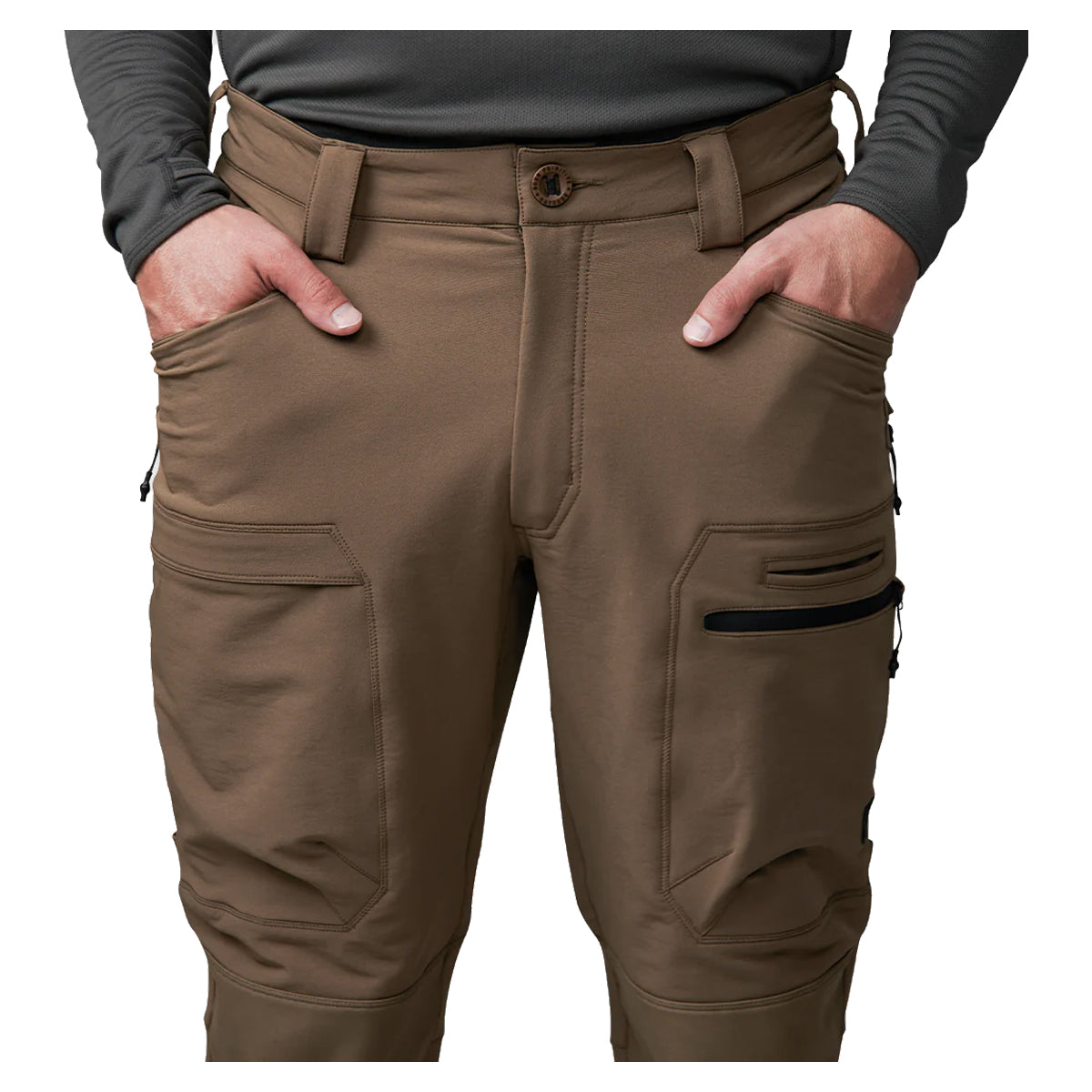 Walking around town or through the brush on a stalk, The Frontier Pant provides you with the ultimate comfort and quality needed to get through the day. Able to stretch with you, there is no need to worry about being limited in your range of motion, allowing you to push through the task at hand. Whether it’s a sunny day or you get warm from a stalk-in, the Frontier Pant has ventilated zippers built into the legs to help keep you comfortable in all conditions. With Ballistic Nylon Reinforced knees and seat, the Frontier Pant can withstand anything you can throw at them season after season. Born Primitive advanced 9-pocket system includes 2 large front pockets with coin pockets, 2 low-profile cargo pockets, a rear zipper pocket, and a rear open-welt pocket to store essentials like gloves, phone, satellite communicator, and knife. The Frontier Pant Light is also available when hunting or scouting in warmer climates.