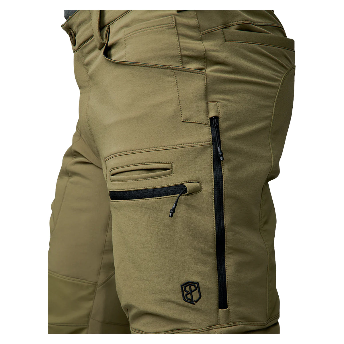 Pockets Large Front Pockets with Coin Pockets, low profile left cargo pocket with zippered opening & cell pocket, low profile right cargo pocket w/easy, over-under access, rear right zippered pocket, left rear open-welt pocket