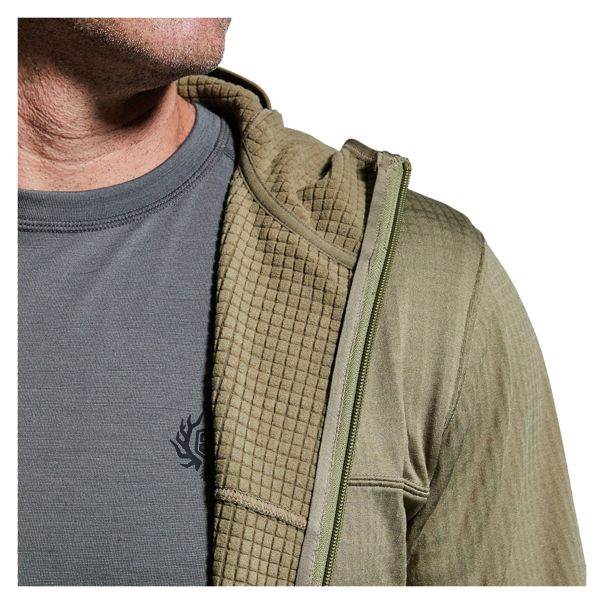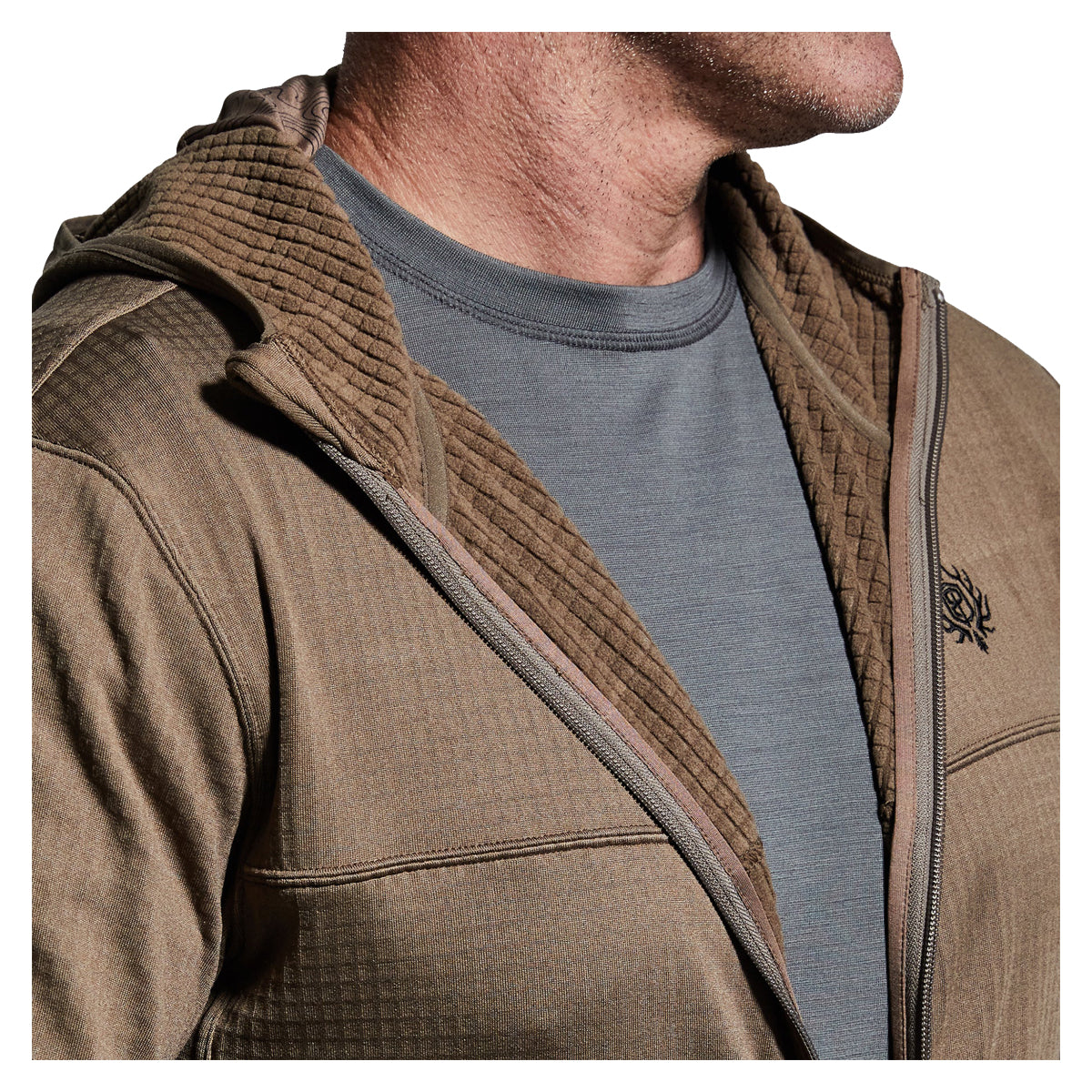 The Quiver Full Zip Hoodie is a mid-layer grid fleece that will likely be the most versatile piece in your entire layering system. The full zip hoodie is perfect for an extended stay in the field or for everyday use. The ultra-comfortable grid fabric contains a gentle stretch and an athletic fit. The grid texturing is ideal for wicking moisture, keeping you dry even during high levels of exertion. Features elongated back hem with hood, thumb holes and a build-in face mask/neck gaiter. The Quiver full Zip is great as a standalone piece during early rifle hunts or as a mid-layer for colder late rifle hunts.