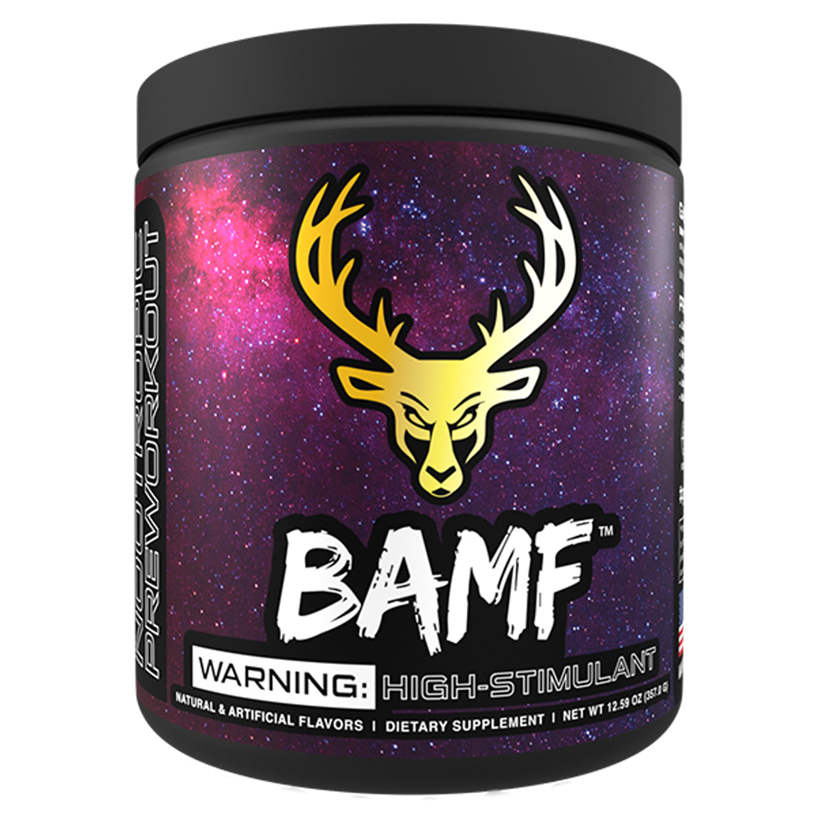 PointsBucked Up BAMF is the first of its kind, a true nootropic high stimulant pre-workout to give you awesome pumps and performance plus focus. Not only is it formulated to help deliver everything you’d expect from a pre-workout; energy, endurance, pump, and increased performance but it also features three brain-boosting ingredients to help promote mental sharpness, deliver hyperfocus, and improve mind-muscle connection. Using three nootropics has been shown to have positive impacts on cognitive function and motivation making BAMF your brain’s geek squad and task manager. Dynamine was added for next-level focus, AlphaSize to help elevate mental sharpness, and Huperzine-A to accelerate memory recall. BAMF can also strengthen your mind-muscle connection, elite performance is an outcome of your brain melding with its synapses so they’re firing synergistically.