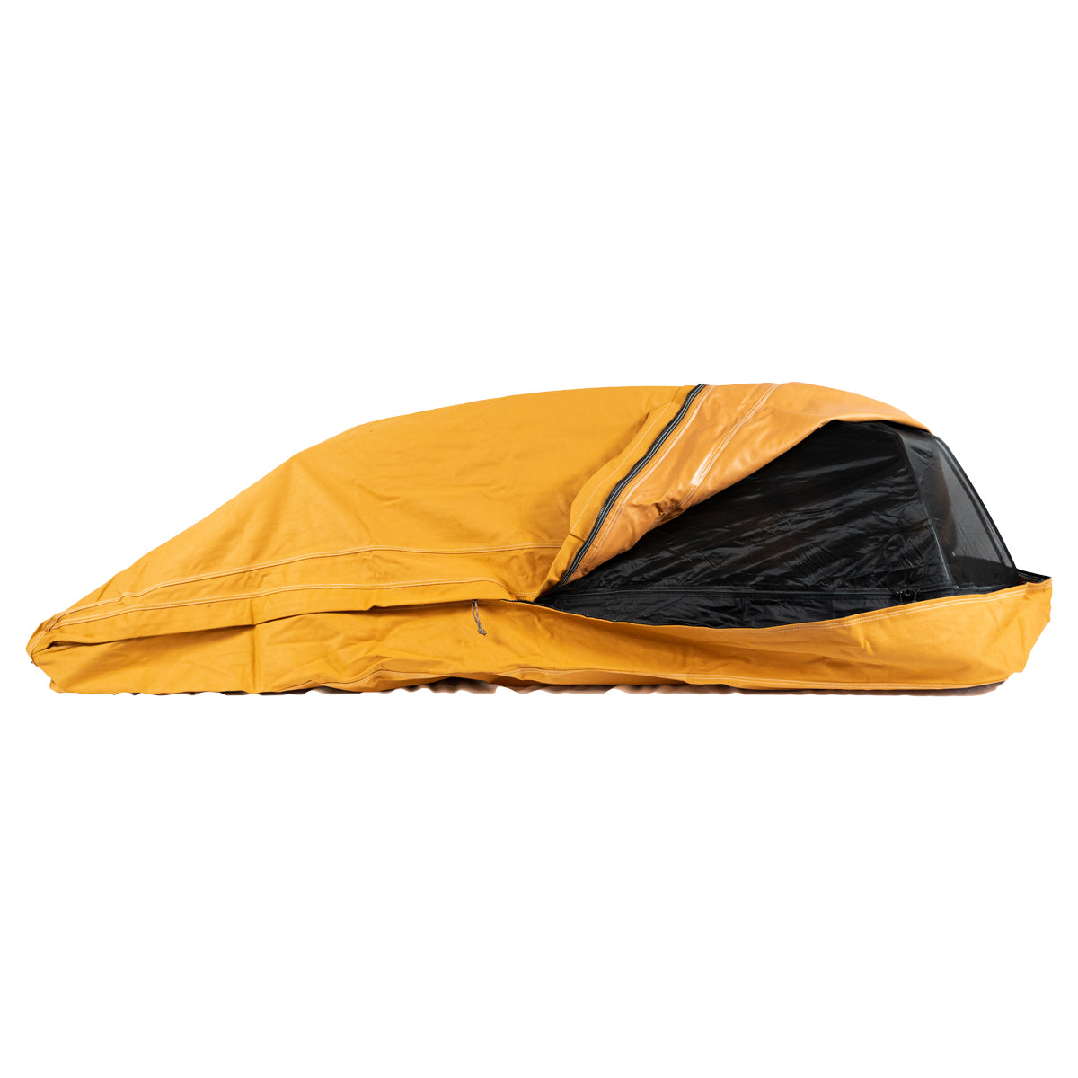 PointsThe Canvas Cutter Fortress 2.0 Sleep System is crafted with heavy-duty 14.5oz canvas, treated to resist water and mildew, and lined with breathable polyurethane for extra protection. Seams are double-stitched and taped, so you can enjoy a dry night's sleep. Four tough SBS zipper sliders and a #8 SBS zipper make it easy to get in and out, and control temperature and airflow, even in challenging conditions like dust, sand, and mud. Three nylon straps connected to quick release buckles, plus an easy carry handle, let you roll, cinch, carry and store this bedroll. The Fortress comes with the full pole system giving you maximum space and helps increase the bedroll's ability to shed water, improves air circulation and the breathability of the canvas. Get into a Fortress and sleep better!