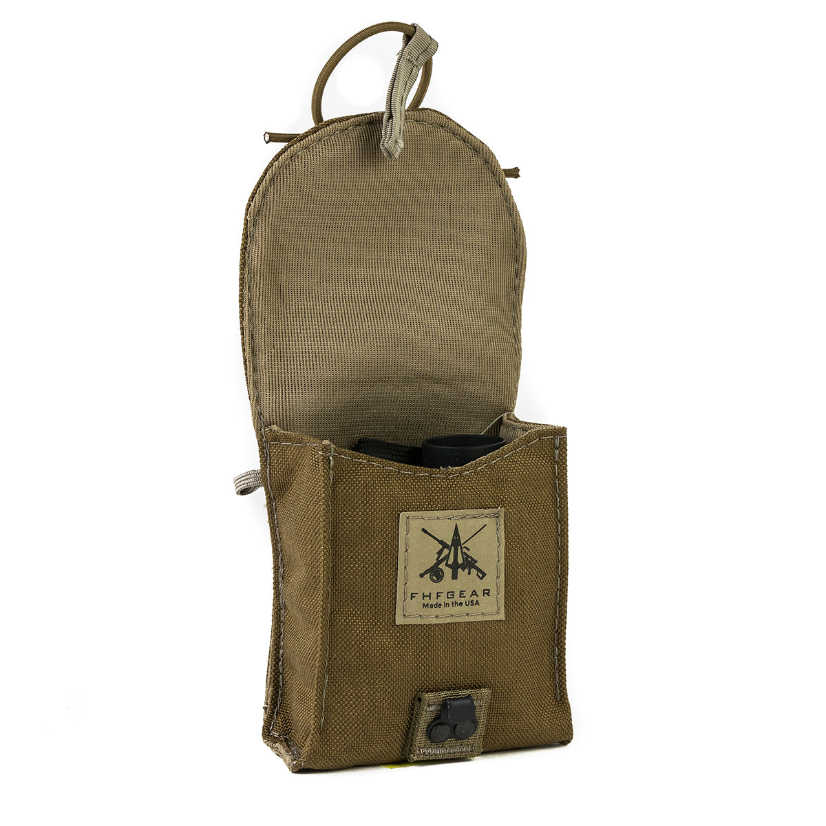 The two sizes of the FHF Gear Rangefinder Pouches are specifically made to mount next to your FHF Gear Bino Harness. Both are backed by a 3″ belt loop and include a pouch keeper designed to attach to one buckle keeping it from sliding around on the harness. This pouch uses the same bungee and boot hook closure as the bino pouch to provide quick, easy, silent access to your rangefinder. A slight amount of padding accompanied by a soft and smooth lining material helps protect your rangefinder while being completely functional. This pouch is not MOLLE equipped, but now have a large enough belt loop to utilize the Ladder Panel. The optional coiled equipment lanyard can be attached to either side of the pouch, securing your rangefinder while still allowing for quick and convenient retrieval. Please note, lanyard is NOT included.
