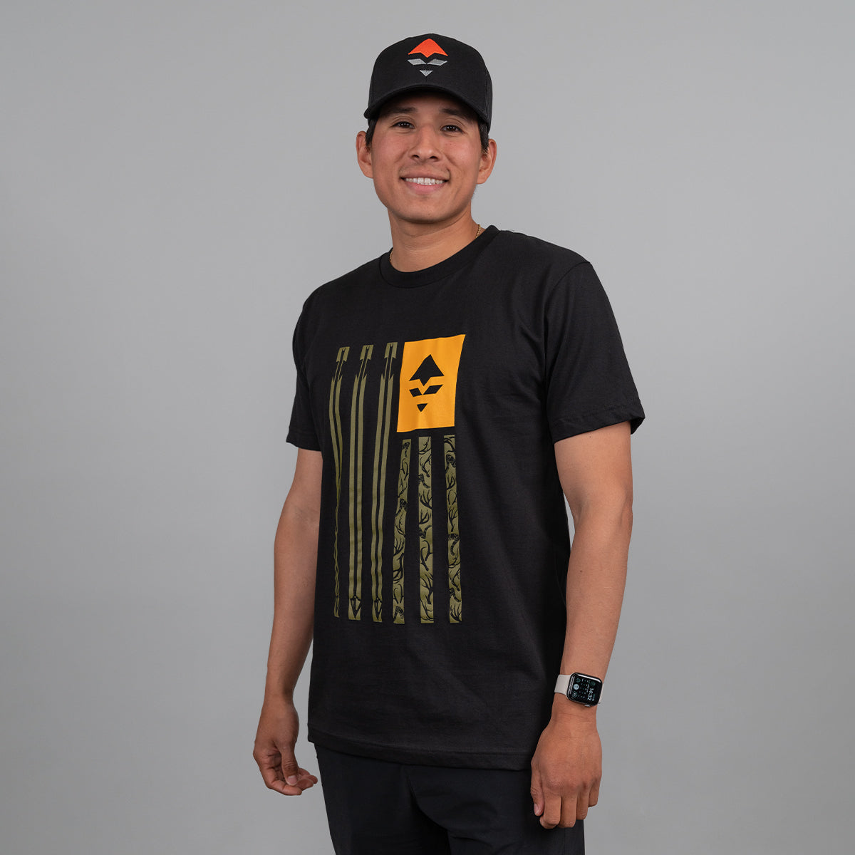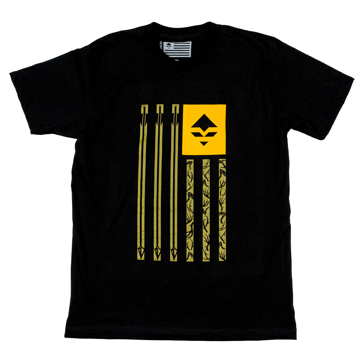 Represent your love for bowhunting and America with this made-in-America T-Shirt! The Bowhunt America T-Shirt is 100% cotton for a soft feel and clean look. Everything from the design, fabric and construction was done here in the USA! This shirt features a true-to-size fit. If you throw your t-shirts in the dryer or prefer a little more room, you may want to go up one size.
