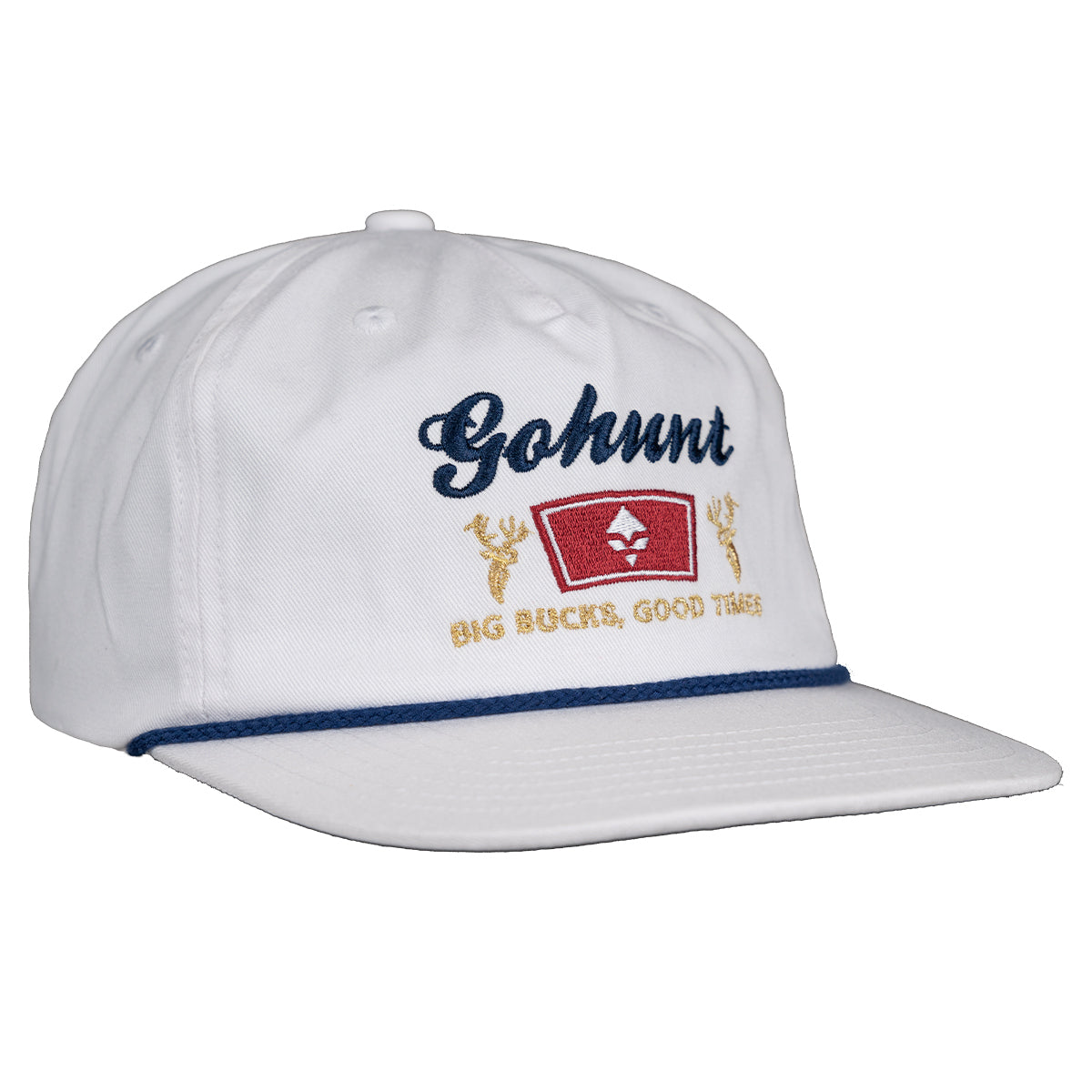 Big Bucks, Good Times. The GOHUNT Cooler Hat is the perfect hat for sitting around the cooler or standing over the grill. This hat features a 100% cotton twill fabric with a moisture-wicking sweatband to keep you cool and dry. The unstructured, five-panel design has an adjustable nylon strap which helps you achieve the perfect fit. The visor rope gives it a retro style, just like granddad's favorite cap.