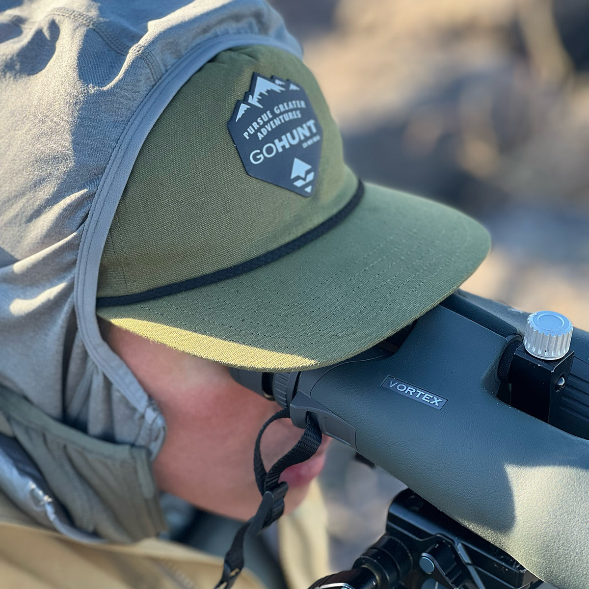 The GOHUNT Felt Hat is an outdoor lifestyle hat that feels at home next to the campfire or running errands with the family. The Felt features a brand new PU leather heat-sealed patch with a white cap mountain scape and moto reminding you to always, "Pursue Great Adventures". The Felt has a 5-panel mostly unstructured construction with a durable cotton canvas fabric and matching visor. A polyester mesh panel was inserted behind the front panel to provide minimal structure without sacrificing the overall comfort of an instructed hat. The cool dry moisture wicking sweatband keeps you comfortable all day long and the adjustable strap back gives you the perfect fit.