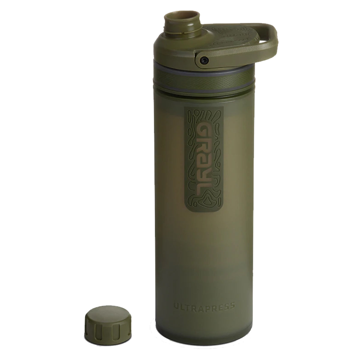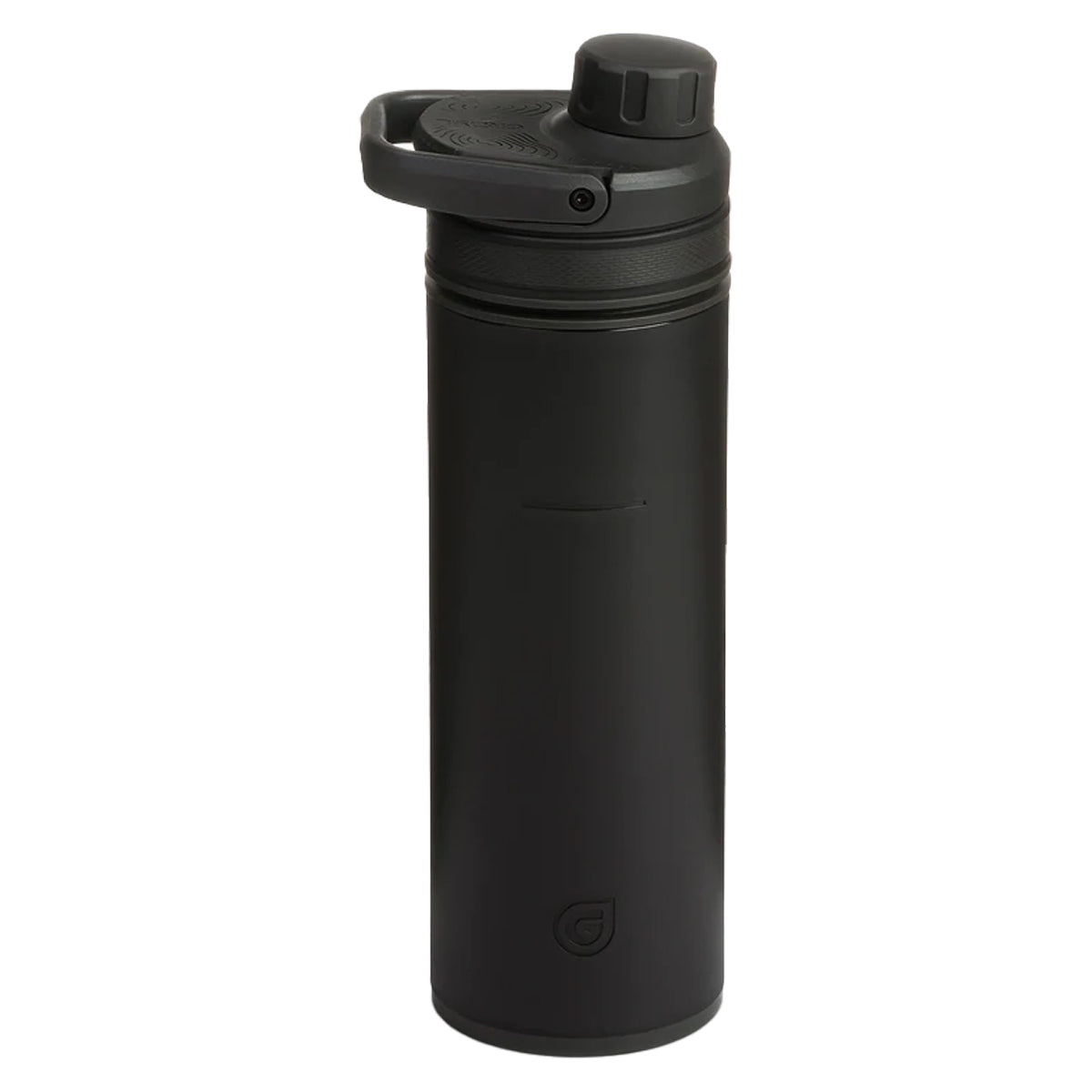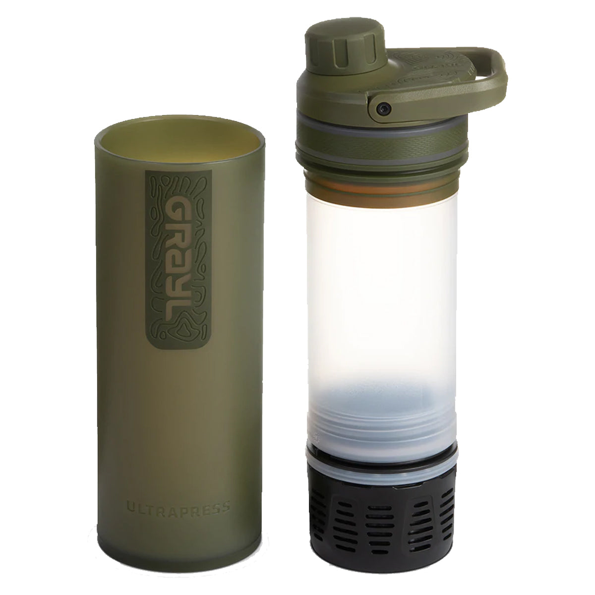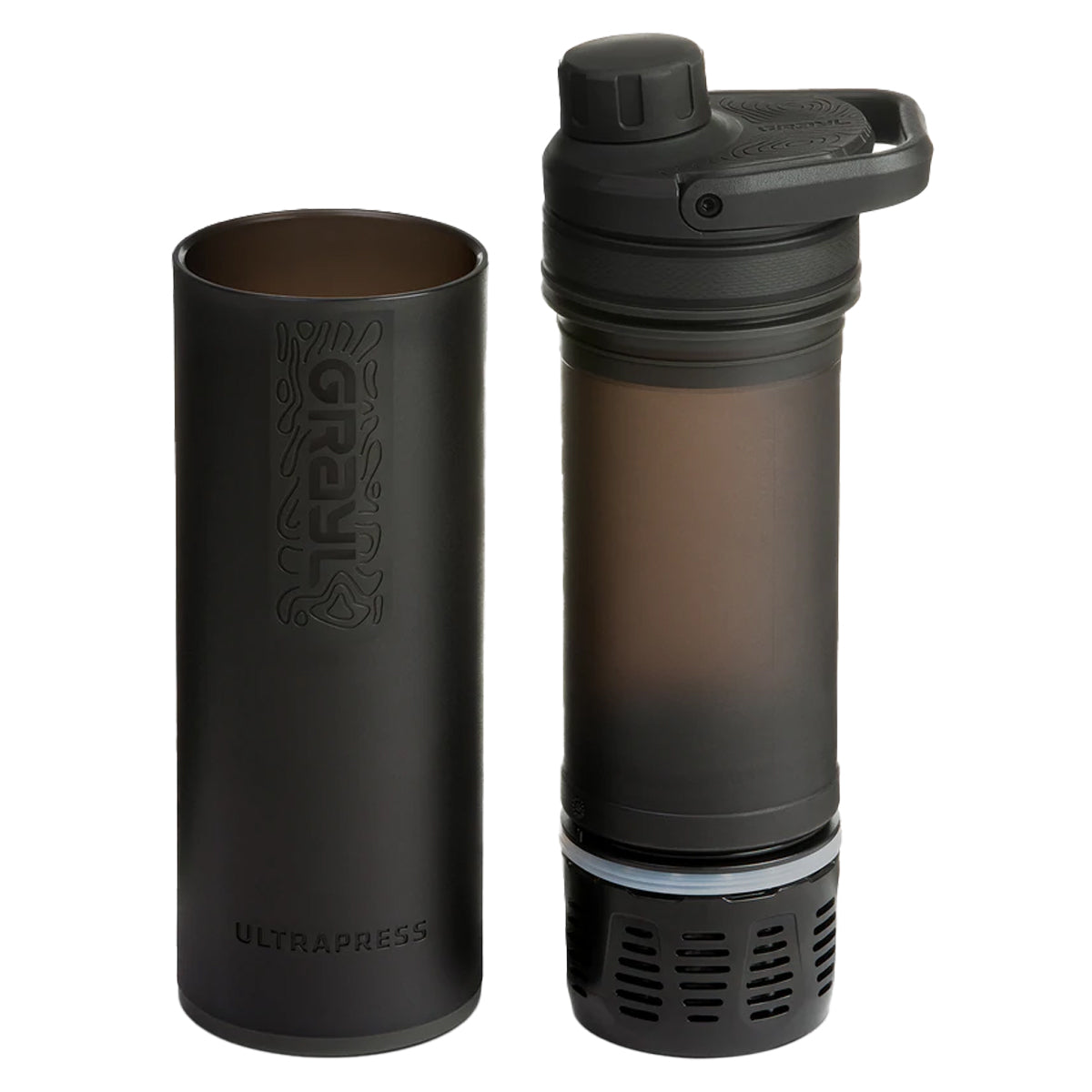 Why we like this productIf you are looking for a compact, discrete, and easy-to-use purifier, then pick up the Grayl 16.9 UltraPress Covert Edition and be blown away by its performance. The 16.9 UltraPress Covert Edition fits into any pack pocket or cup holder so you can keep it with you during road trips or airport travel. The UltraPress requires zero setup and makes 16.9 ounces of purified drinking water in 10 seconds, simply fill, press, and drink. This on-the-go filter and purifier are perfect for the hiker, hunter, or international adventure who wants to take the guesswork out of filtering and purifying their drinking water. The replaceable UltraPress Purifier Cartridges are rated for 300 cycles, approximately 40 gallons or 150 liters with a single cartridge capable of lasting an entire hunting trip and possibly even the season depending on how lucky you get with drawing tags. Stored under proper conditions unopened purifier cartridges have a shelf life of 10 years with a 3-year shelf life after first use. When the "press-time" reaches 25 seconds it is time to replace the cartridge. RiverFlow spout delivers a fast flow of clean drinking water for easy chugging or filling water bladders for camp. FlipCarry handle can rotate 90 degrees for easy separation between the inner press and outer refill, provides an easy carry handle, and large surface area for pressing when in the flat position. Combine the large surface area with the SoftPress ergonomic comfort pad on the cap for comfortable, non-slip, anti-fatigue pressing when filtering and purifying large quantities of water. The TPE TopoGrip is placed on the heavy use areas of the UltraPress bottle for a tactile, non-slip grip and lasting durability.