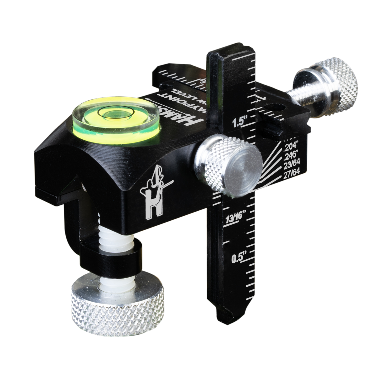 Hamskea's Waypoint Arrow Level is a must-have for the serious archer or bow builder. It allows the archer to very easily measure the exact position of the arrow in relation to the riser shelf both during the initial setup and anytime afterward to help narrow in that perfect tune.