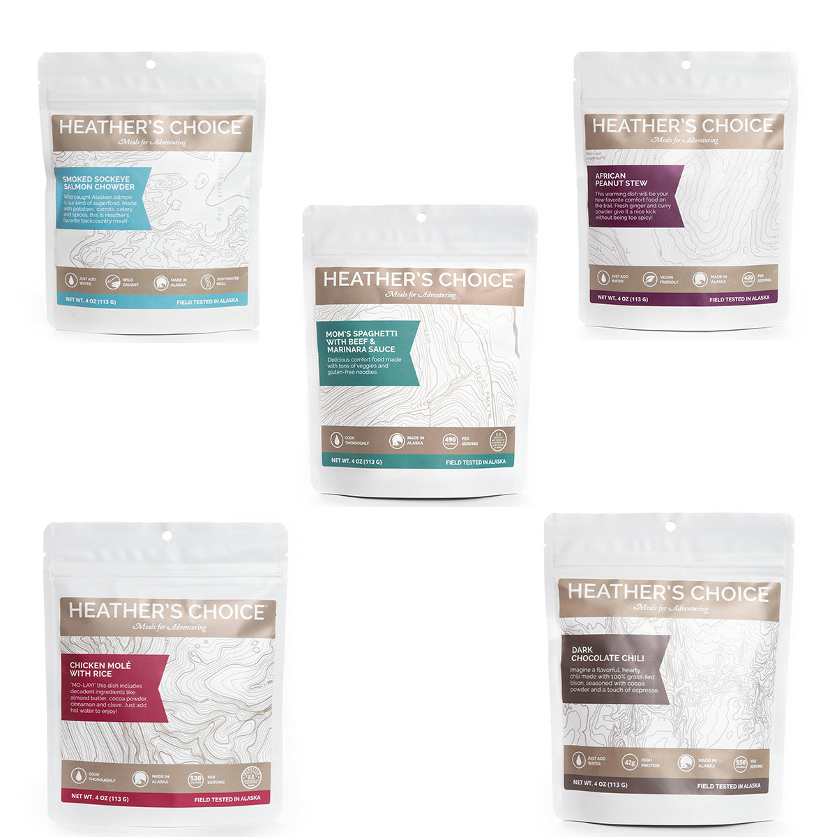 These dehydrated backpacking foods contain no artificial flavors, MSG, fillers, or preservatives. Enjoy an ultralight backcountry meal made with all real ingredients, no surprises. Heather’s Choice backcountry meals and snacks provide an allergen-safe backpacking food option for individuals with a variety of dietary restrictions. These just add water meals are a convenient solution both on and off the trail! Heather's Choice products are ready for your next hiking, backpacking, backcountry hunting, fishing, or boating adventure. These lightweight, packable meals are easy to stow on any outdoor recreational adventure and require just boiling water to prepare. Enjoy the same ready to eat convenience at camp or in the backcountry!