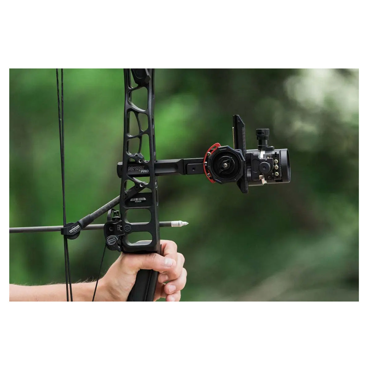 Looking to shoot a 1-pin for 3D, but switch to a 3-pin for hunting? Now you can with interchangeable indicators and scopes. The NYTRX is HHA's first sight ever made with completely independent 1st, 2nd, and 3rd Axis adjustments. The newly added 1st axis adjustment ensures that your sight rail is always traveling level to your bow, increasing your accuracy at long-range distances. It features a newly repositioned gear rack allowing you to “0” out your scope and utilize your entire yardage wheel extending your range. Paired with the Long Distance Tapes (Included) you’re able to reach further distances than ever before. The Side Mount provides a compact, lightweight design for minimal interference. For enhanced customization, the Picatinny Mount works with tactical accessories, while the Dovetail Mount offers extended adjustability and precision. The Nytrx Pro also features a removable sight wheel for unmatched convenience and versatility. Easily swap wheels to adapt to different distances or shooting scenarios without losing your settings. This innovative design ensures quick adjustments and precision every time.
