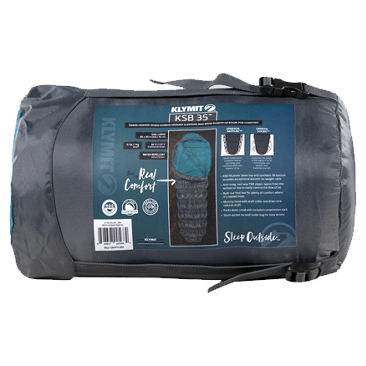 A lightweight, versatile bag with plenty of room for comfort on cooler nights. The KSB 35 features a 650 fill power down top and synthetic fill bottom provides exceptional warmth-to-weight ratio. Right at home in the backcountry or hunting from the truck, this bag features Length Locks™ that can shorten the bag, and a two-way zipper that allows you to open the foot box for ventilation. Unzip the bag all the way to convert it into a generous blanket.