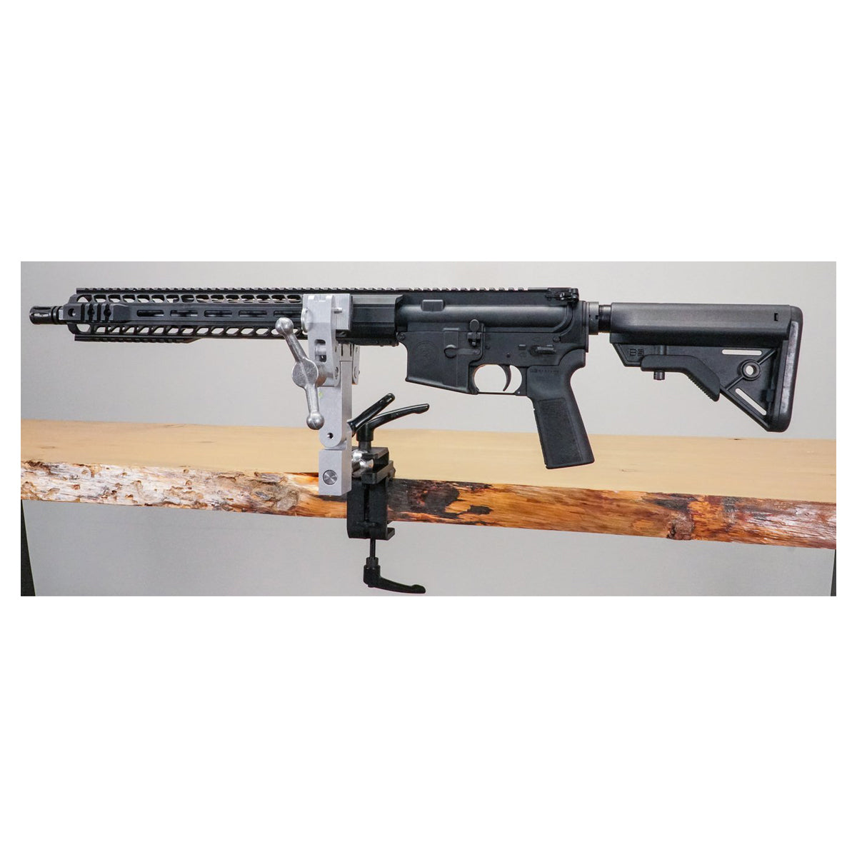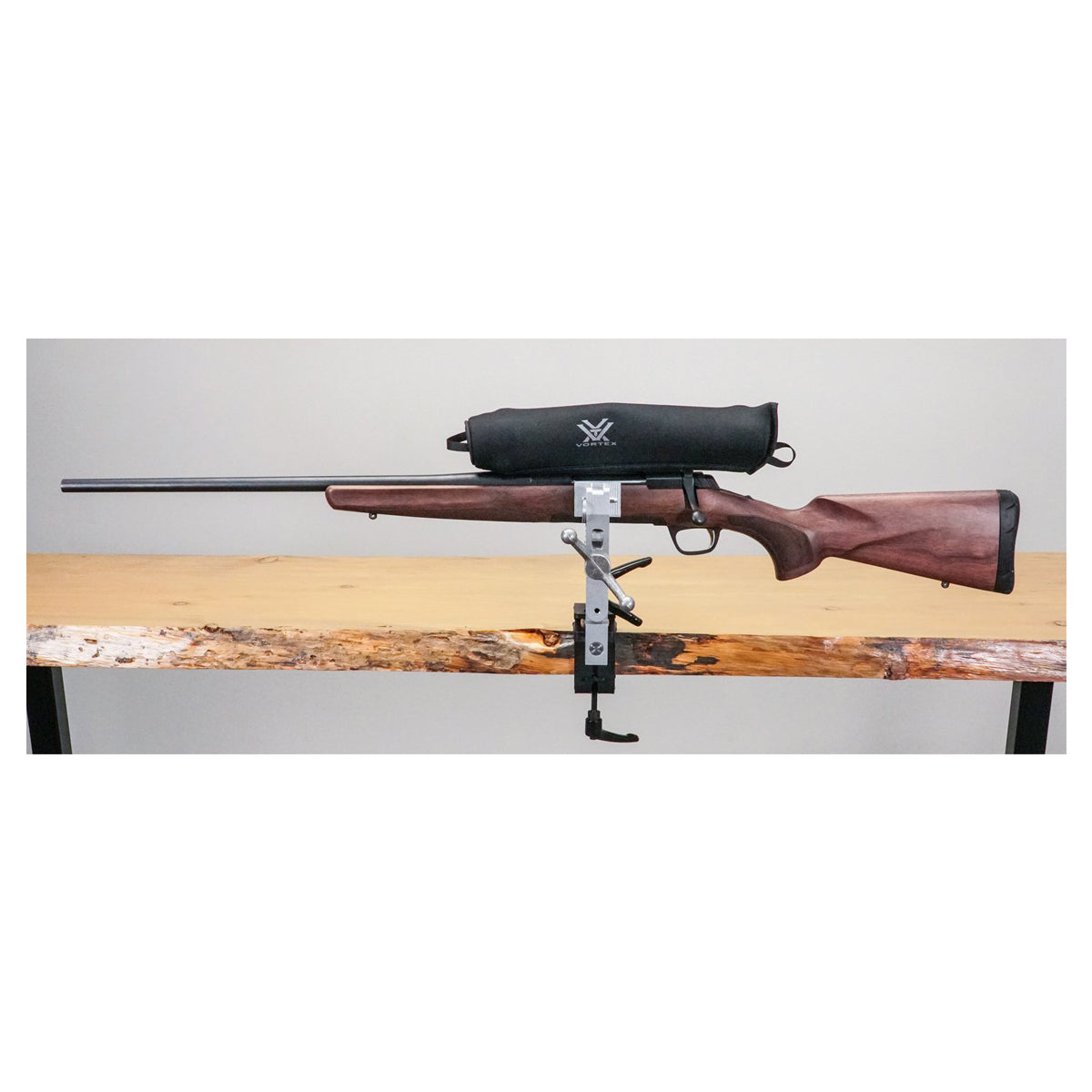 The Last Chance Archery Revolution Vise is a revolution in bow and gun vises. It features a mounting clamp that spreads to 2 3/8” for flexible mounting on benches, tables, or even an LCA bow press. With the included Multi-Axis Head and two insert sets, the vise is designed to adjust the 1st, 2nd, and 3rd axis on your bow quickly and precisely. The Stabilizer Head and AR15 head are available for purchase for additional stabilizing capabilities.