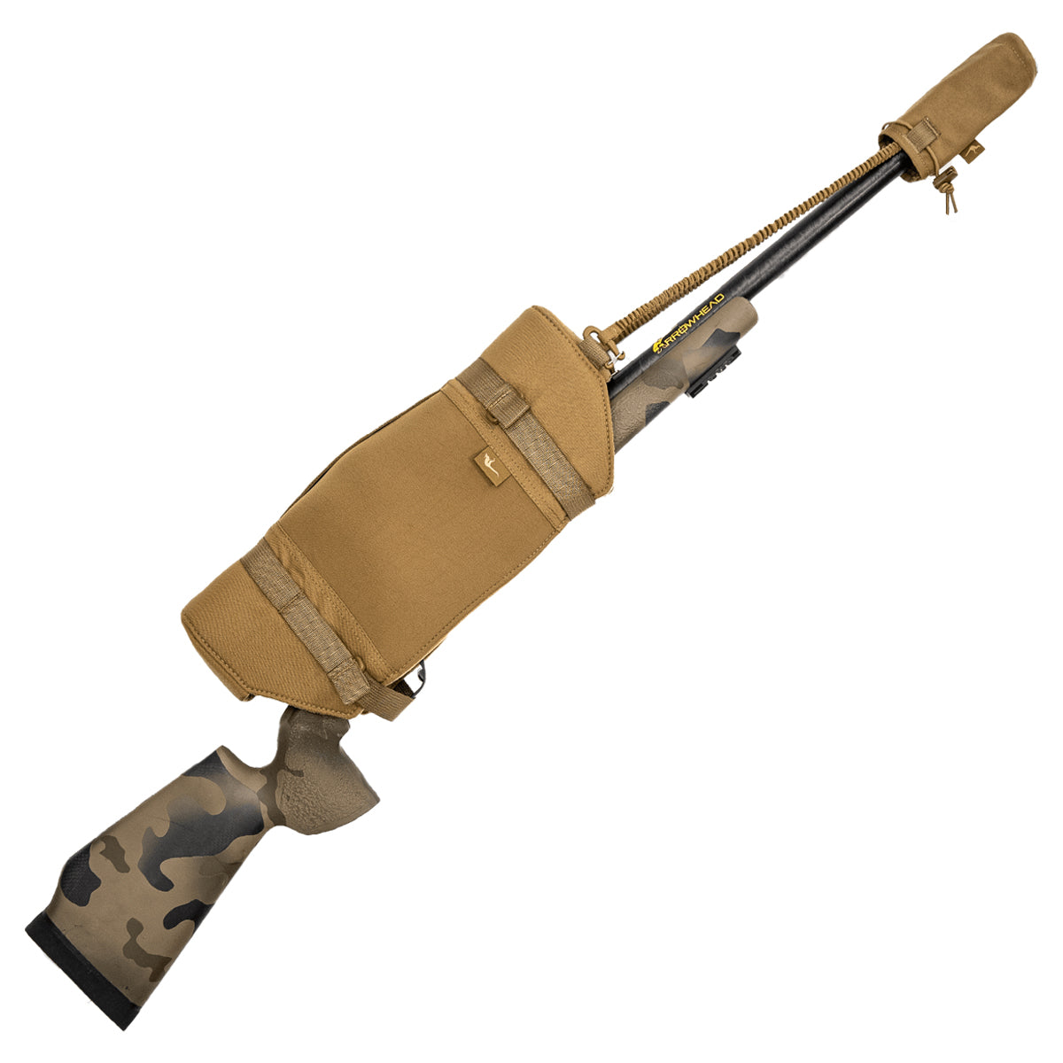 The Marsupial Gear Padded Scope and Muzzle Cover is one of the best options for protecting your rifle scope and action in any situation, hiking through dense brush or crawling through tight spaces. The lightweight, dense foam conforms to your scope and protects it from impacts, while the durable stretch nylon forms to the turrets for an ultra-slim fit. The No-Excess pattern eliminates extra material, weight, and bulk. Autolock Buckles and 1" webbing secure the cover to your rifle, keeping the tension off the scope mounts when being carried by the Low-Profile Carry Handle. The scope and muzzle cover is made with the same 500D Cordura material and attention to detail Marsupial Gear is known for from their bino harness and accessories. The Muzzle cover is connected to the scope cover with removable, custom-tensioned coil bungees to keep debris out of your barrel. Tension around the muzzle can be adjusted with the shock cord and toggle, tighten when going through heavy brush for extra security or loosen when in open country for faster removal.