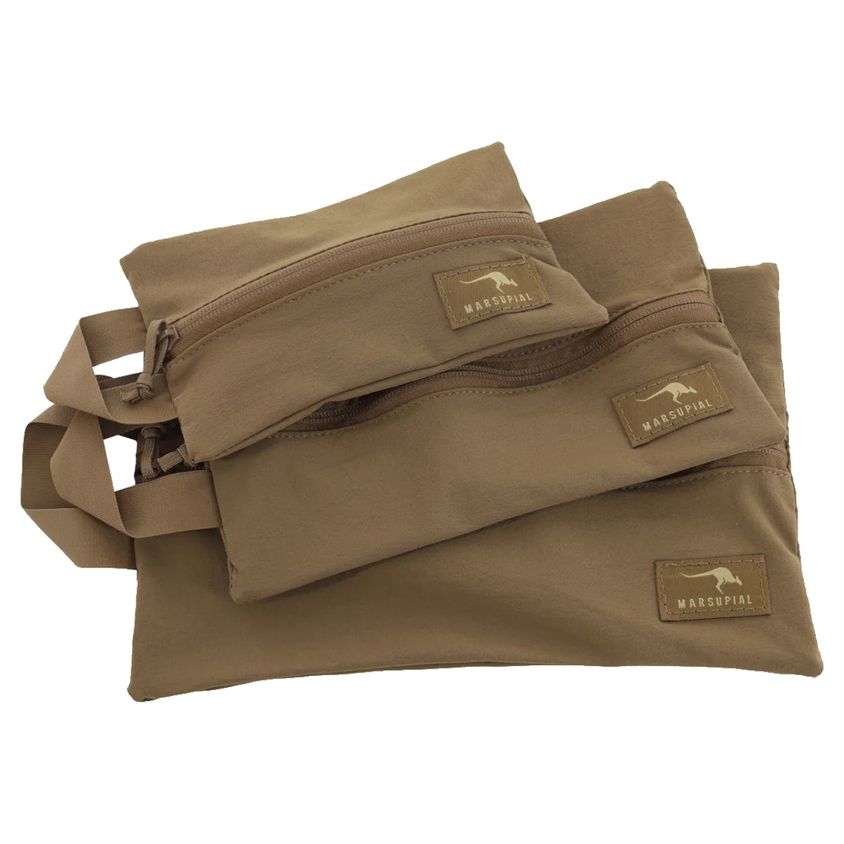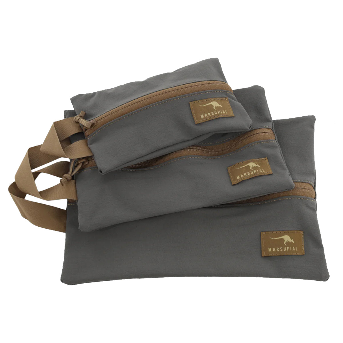 Organize your gear with the Marsupial Gear Stretch Zipperoo Pouches. These pouches are made from a durable four-way stretch fabric that allows you to overstuff the pouches. YKK zippers ensure easy opening and closing functionality, they are super smooth, and will outlast the bag. A lightweight grab handle allows you to easily pull the pouches out from your bag without having to fully open and dump your gear out. The small size is great for a lightweight ditty bag, the medium is perfect for small miscellaneous gear, and the large can be used as a puffy jacket/pant stuff sack.