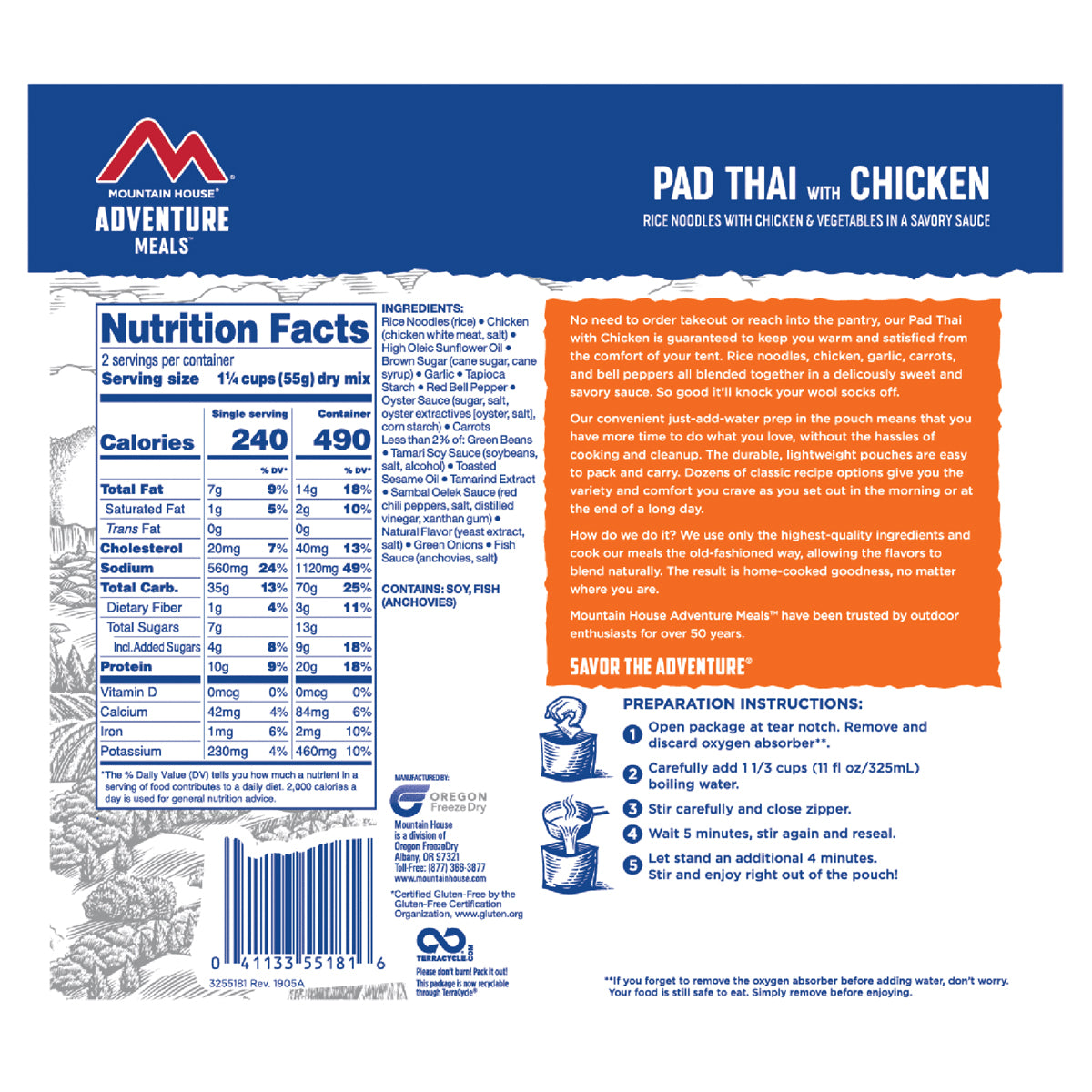 Better than takeout. The Pad Thai is proof that pre-packaged foods outdoors don't have to be bland or dull. With a base of noodles, a handful of herbs and spices, and tender pieces of chicken, this is one for all the foodies to enjoy.