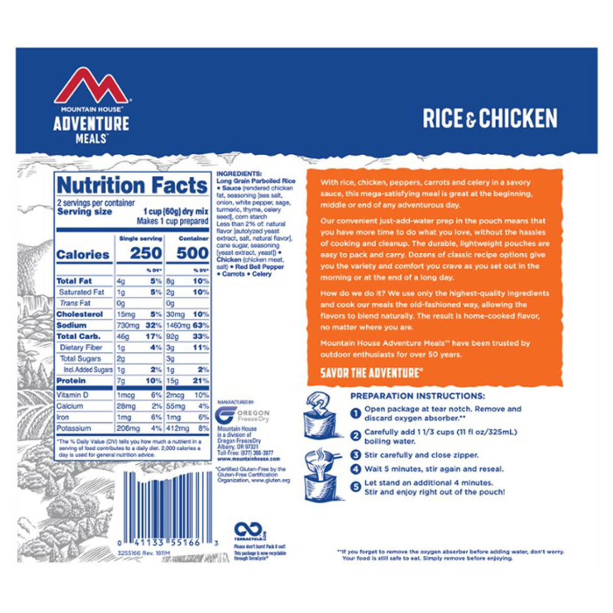 No matter the adventure, you need carbs and protein to keep you energized, especially when hunting - and that's exactly what you'll get with Mountain House Rice and Chicken. Made with tender cooked chicken, bell peppers, carrots, celery, hearty rice, this best-selling favorite has fueled many hunters. Just add hot water and you'll be ready to enjoy a delicious, satisfying meal in minutes.