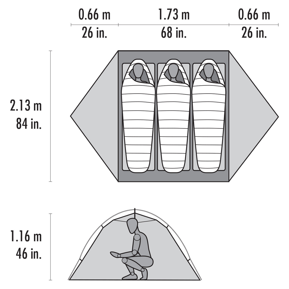 The MSR Hubba Hubba stops you from having to settle between comfort, stability or weight. The Hubba Hubba 3-Person Tent is the best 3-season tent for all your backpacking adventures giving you the best of comfort, stability, and weight. This tent is ideal for two to three person scouting trips in the spring and summer or backpack hunts from fall into early winter. Redesigned and lighter than ever while giving hunters a spacious amount of room for sleeping or waiting out the storm. The symmetrical tent design means you can set up the Hubba Hubba faster, particularly handy for those unexpected backcountry rainstorms. The rainfly features large vestibules for storing any gear you don’t want inside. Easy in-and-out vestibule doors feature StayDry rain gutters to keep running water off you and your gear, while kickstand vents maximize airflow. The tent body is a blend of mesh and solid fabric that provides airflow, privacy and weather protection. No-curve tent doors feature zippers that are easy to use with one hand. The door zippers close at a single point so you always know where to open the door, even in the dark. Overhead gear loft pockets are perfect for headlamps, GPS satellite communicators, cell phones, and other quick-access items.