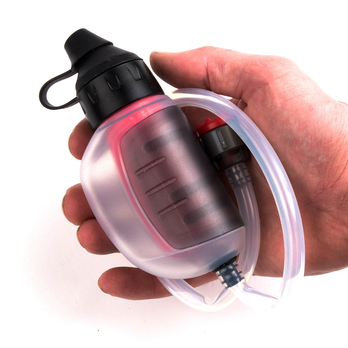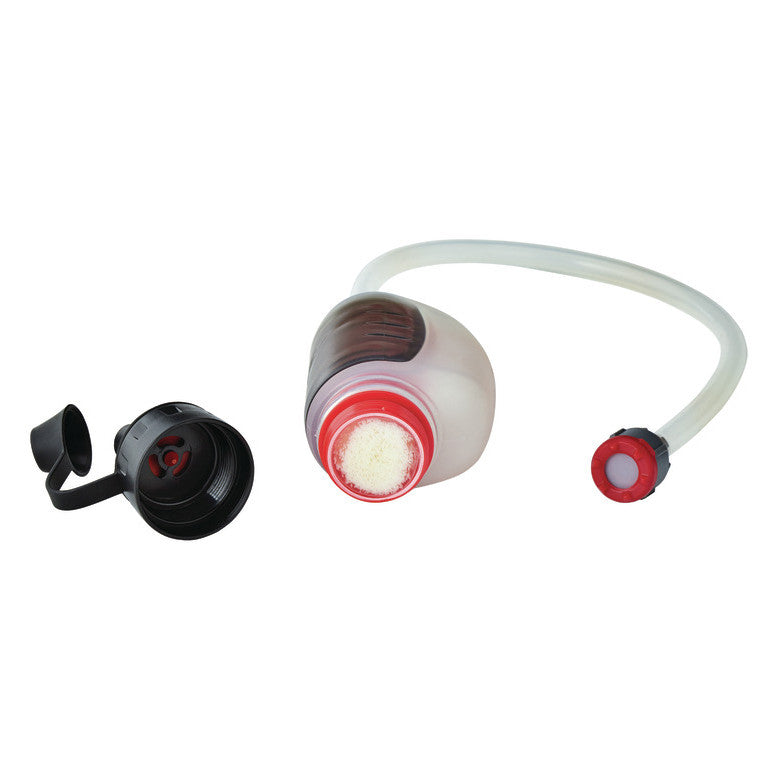 Drink clean water on the go by stashing the ultralight MSR TrailShot Microfilter in your pocket or an easy to access spot in your backpack. The tiny water filter is designed so hikers can drink directly from sources along the trail for instant hydration and fill water bladders or bottles with clean water. The one-handed operation filters one liter of water in 60 seconds. Note: 75 pumps will fill a standard-sized Nalgene bottle. The TrailShot is also easy to clean. A few shakes help restore flow rates in the field; no tools required.
