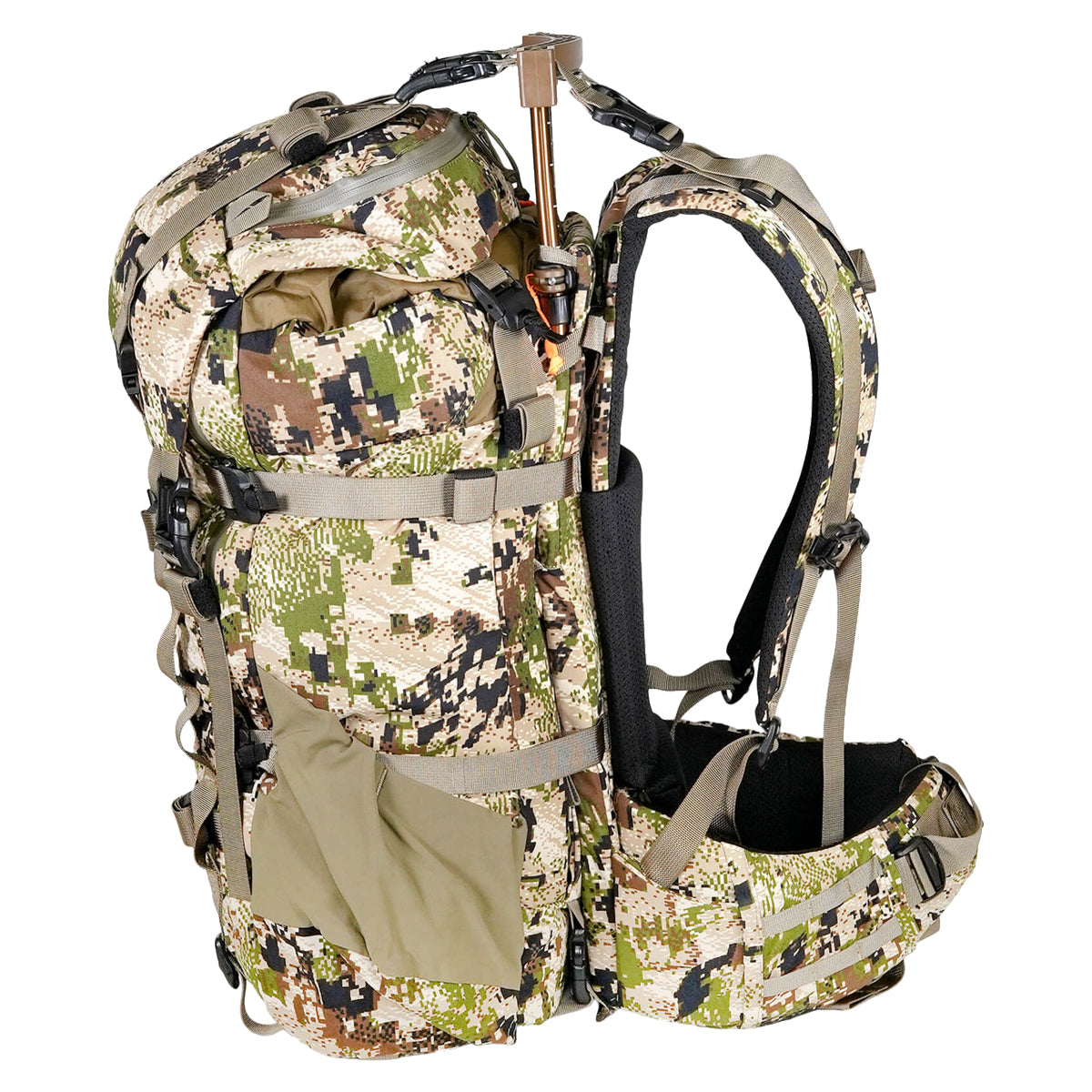 The Mystery Ranch Pop-Up 40 is a high-volume daypack that keeps a low profile and is functional in the field when it’s time to do some serious packing. The Overload feature allows hunters to transform the Pop-Up 40 into a capable meat hauler. The telescoping frame offers 80 lbs of carrying capacity with the bulk of the weight riding close to your back for exceptional comfort during long hauls back to your rig. The compression straps on the face can secure a bow or rifle, freeing up your hands when navigating difficult terrain with trekking poles. The Pop-Up 40 features pockets and storage compartments to keep gear and snacks close at hand. A full-length zipper and drawstring shroud allow you to access gear from the main compartment at a moment’s notice. Like other MR packs the Pop-Up 40’s Hunting Light Yoke can be adjusted to the user’s torso length. Cameras, spotting scopes, binocular mounts, and rifle mounts can be attached directly to the top of the pop-up frame using the integrated ¼-20 thumbscrew keeping you light and fast.