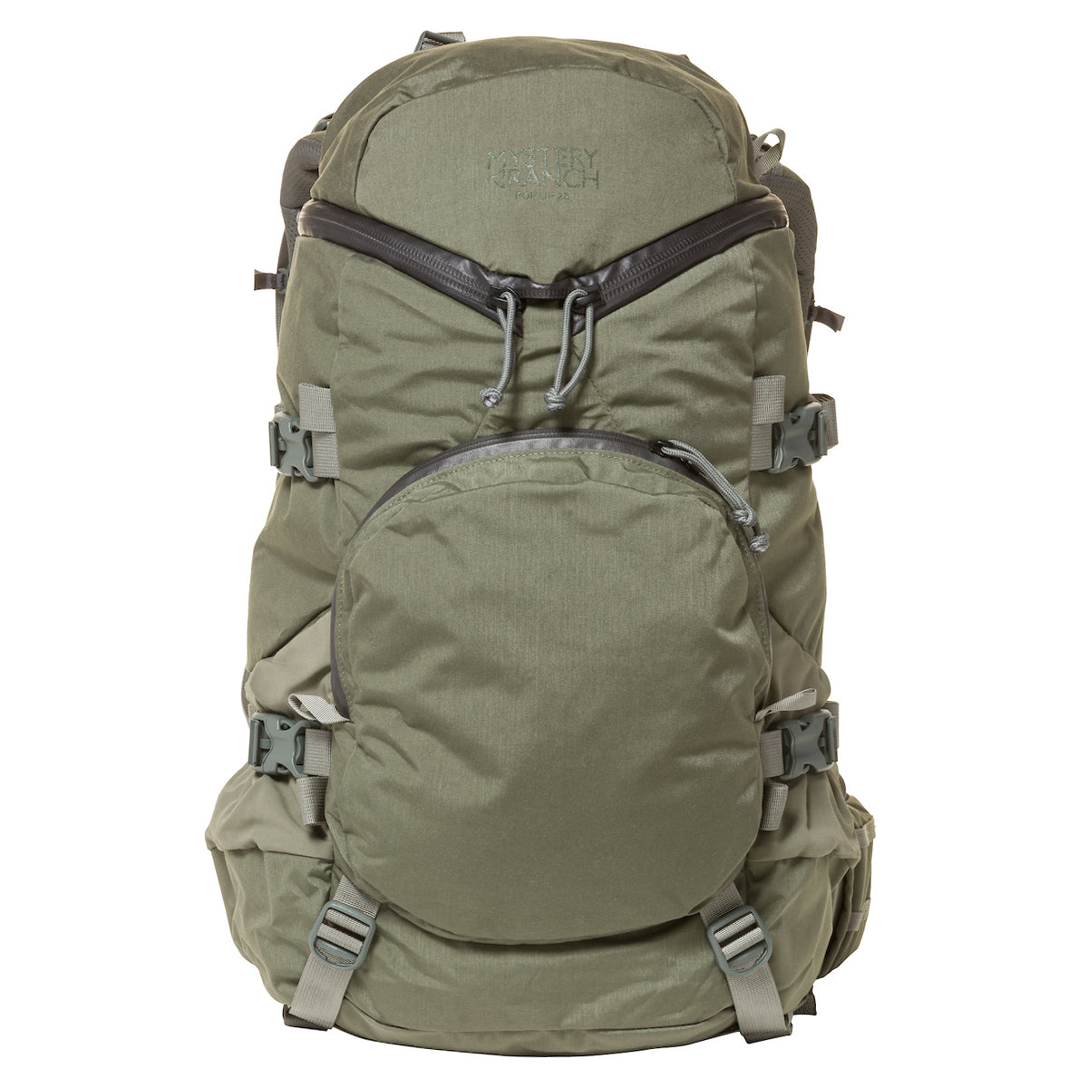 The Pop Up changes the game for day hunters by enabling them to carry a small, convenient, and lightweight bag that could easily convert into a heavy-duty load-hauling frame pack once they get an animal down. The Pop Up frame "pops up" via telescopic stays that utilize trekking pole technology for greater strength and ease of use. This frame can be adjusted to a raised position which allows you to haul heavier loads more efficiently. It features Rip-Zip access to the main compartment along with zippered accessory compartments on the lid and the front. The side water bottle pockets and compression straps securely fit tripods and trekking poles.