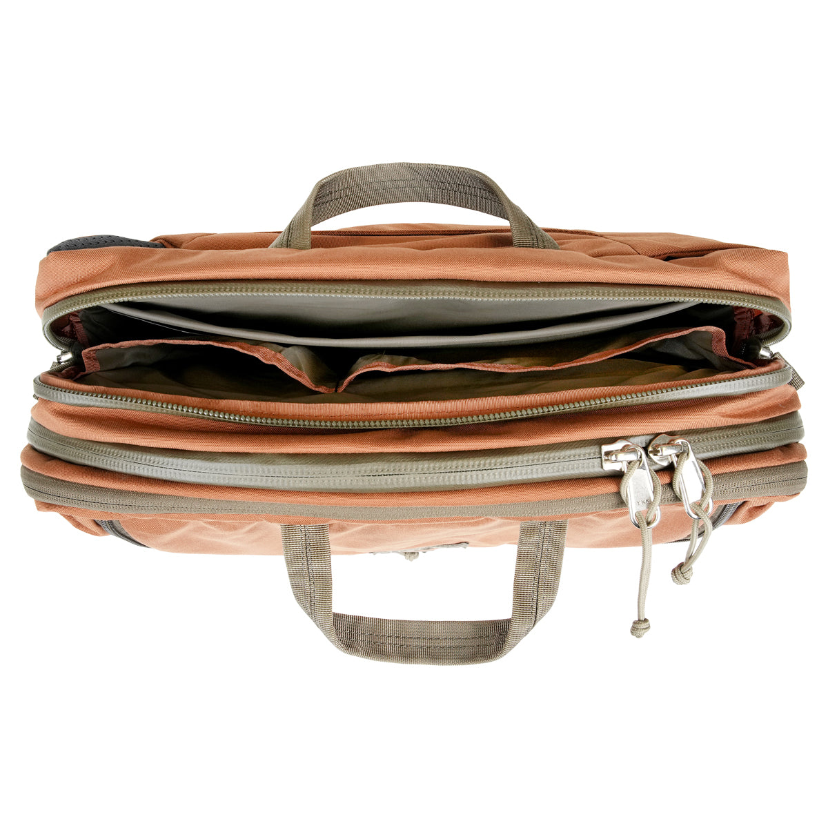The Mystery Ranch 3-Way Briefcase is an ideal choice for daily work use or personal travel and now comes in 18 liters. Three carrying styles increase the bag's versatility, while the fully padded, stowable backpack and shoulder straps avoid an unkempt appearance. Built for comfort and convenience, the 3-Way Briefcase allows you to customize how you carry it to best fit your lifestyle. The lightweight and rugged construction ensures you can transport your essentials without worrying about wear and tear. The Mystery Ranch 3-way briefcase features a 15" padded laptop sleeve, magnetic buckle, and expandable pockets.