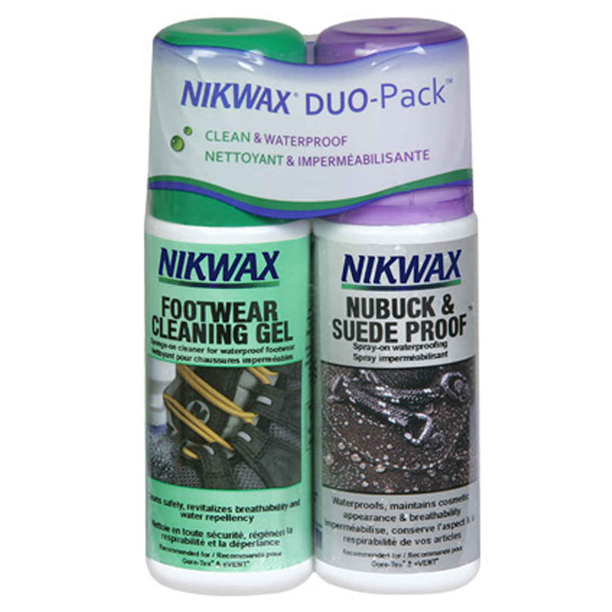 Nikwax helps you protect and prolong the life of your pricey boots and shoes with the Nubuck/Suede Proof and Cleaning Gel Spray Duo-Pack. This comprehensive solution includes the Cleaning Gel, which safely cleans leather, nubuck, suede, and leather/fabric combination boots and shoes. Then, apply the Nubuck/Suede Proof, which restores waterproofness without affecting the distinctive texture of these leathers. The 125ml bottle size fits easily into your travel bag, shirt pocket, or shoebox, so you're always ready when muddy days strike. Use this product instead of conventional detergents or washing powder. Nubuck & Suede Proof adds water-repellency and revives breathability to nubuck and suede. Prolongs the effective lifespan and optimizes the performance of your nubuck and suede footwear. All you need to safely clean and add water repellency to nubuck and suede footwear.