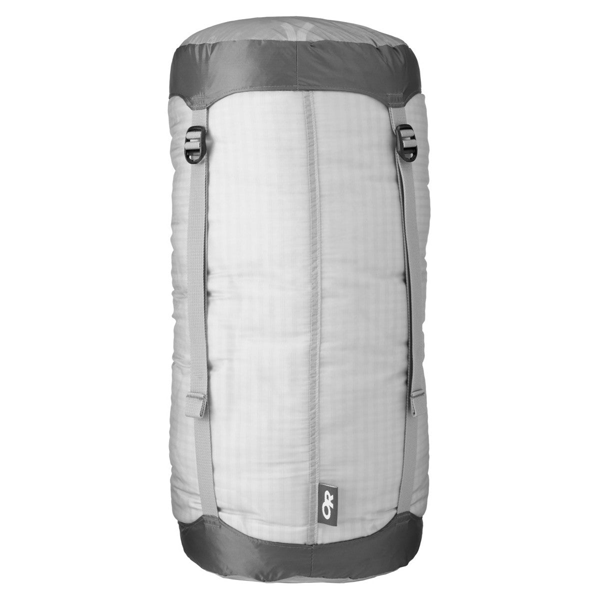 When space is an issue, the Outdoor Research Ultralight Compression Sack can reduce sleepings bags and other stuffable items to a pack-friendly size. The siliconized fabric resists moisture and a pocket in the end cap keeps track of small items or can be used for self-storage. It features four compression straps.