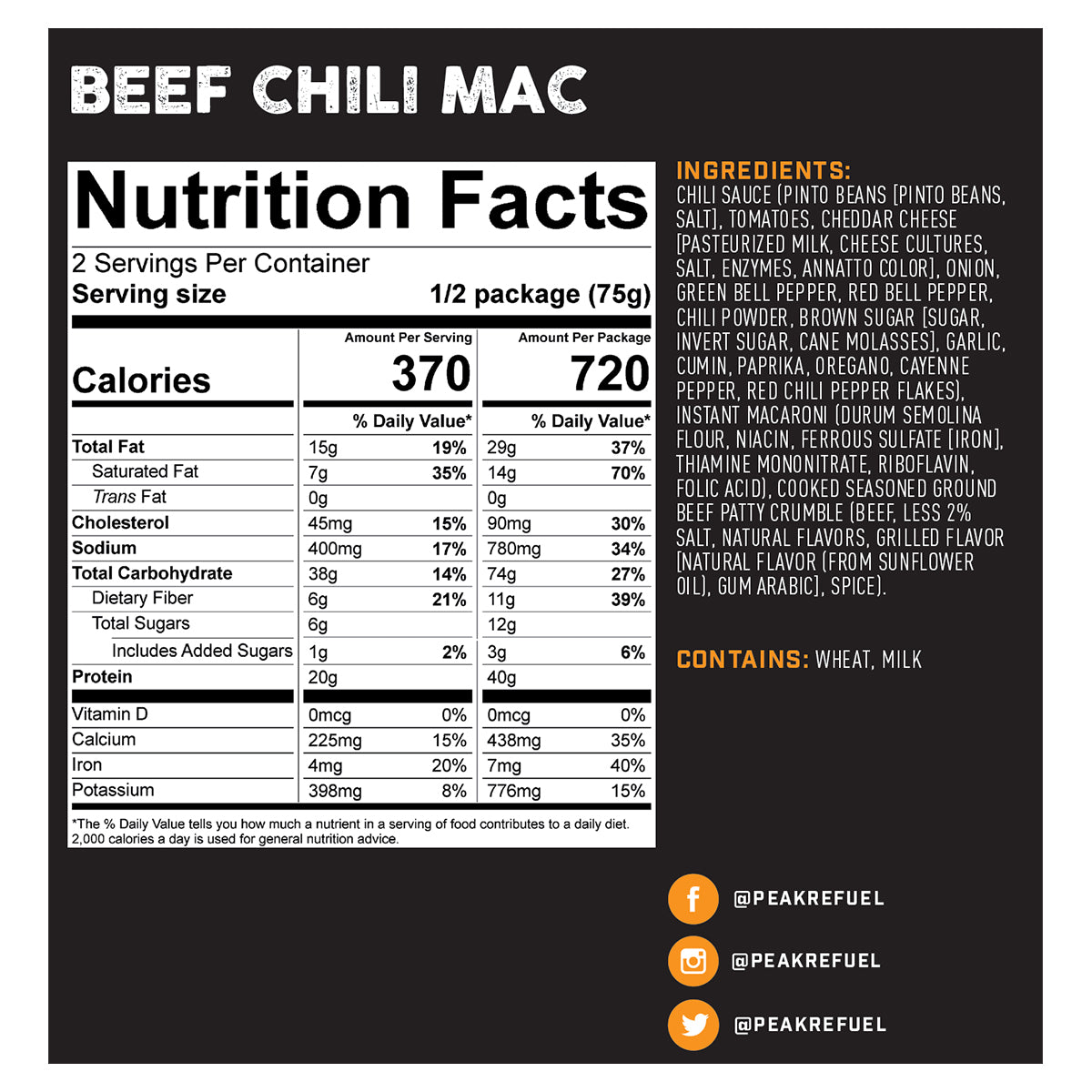 When you are hunting, you want to be at your best! Peak Refuel premium meals are formulated to deliver amazing taste for any adventure. Created with the best freeze-dried ingredients on the market – always using 100% real meat and premium ingredients to ensure you’re at your highest level. Peak Refuel's Beef Chili Mac is made with beef crumbles, macaroni noodles, beans, and vegetables in a sweet chili sauce. It will fill you after a long day of hunting and give you all the fuel you need to tackle the next day.