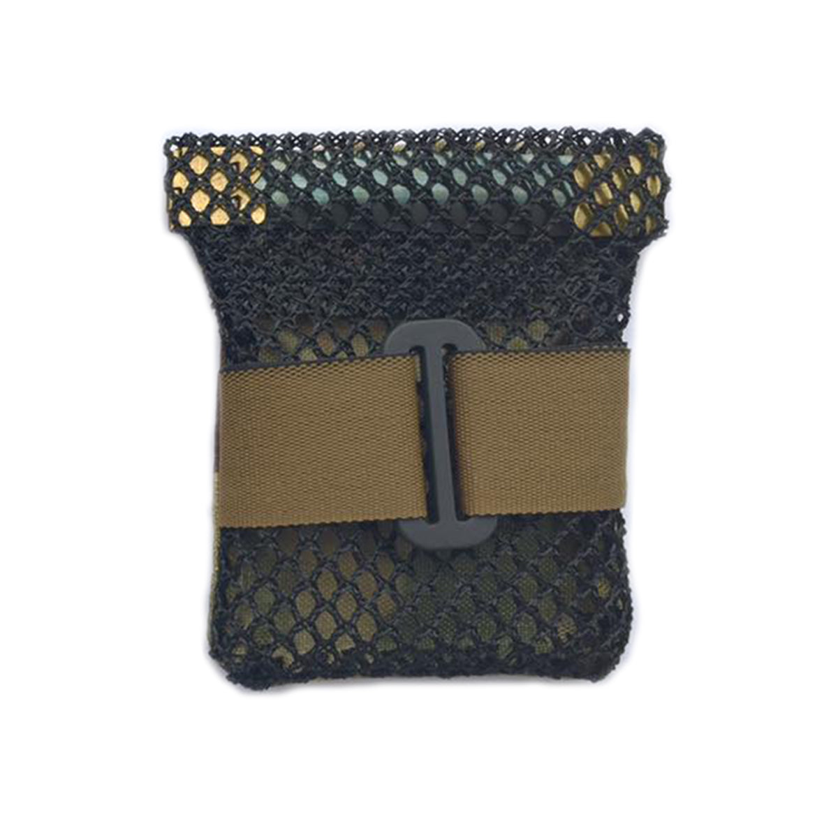 Finally a way to dry your calls out between using them. Attaches to most pack straps. Made with 1000D Multicam Cordura on one side, Mil-spec mesh on the other. Elastic enclosure with a common loop and three bar sliders (Kifaru K-Clip is shown).