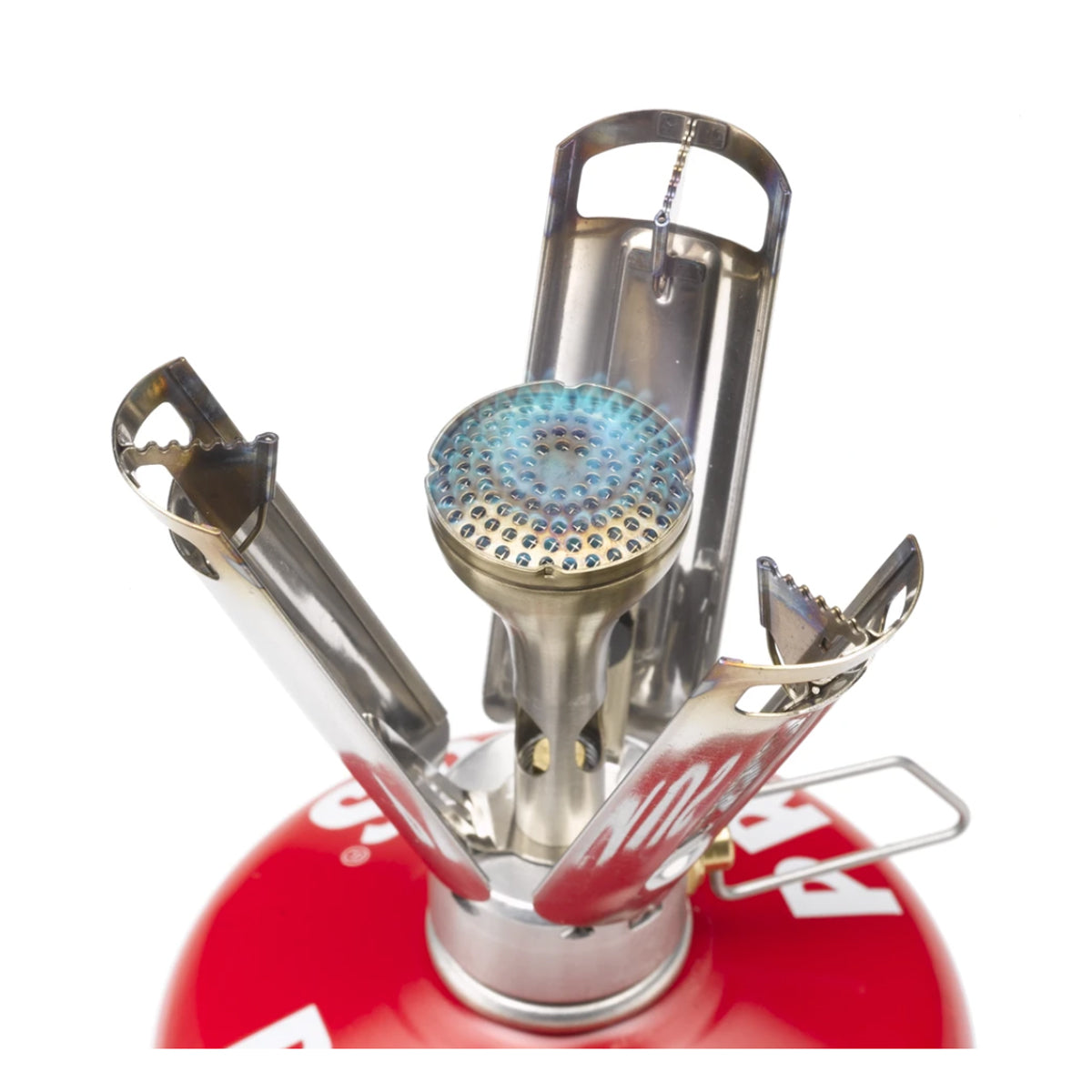 Mount this small burner on top of any gas canister, and fire it up with the single-handed use Piezo igniter rod. This slim stove offers an 8530BTU (2500 W) flame that can boil a liter of water in four and a half minutes, or can be lowered to a simmer.