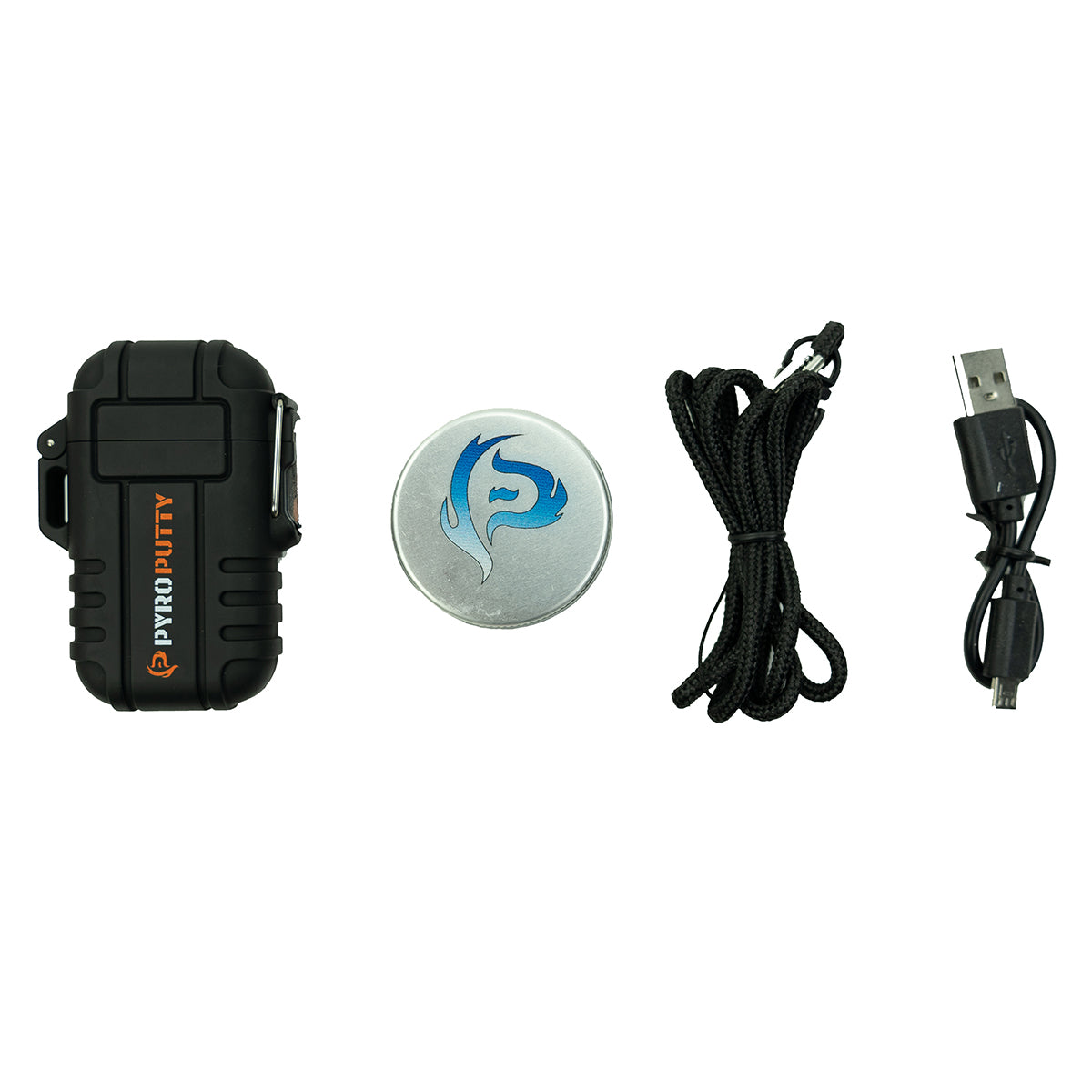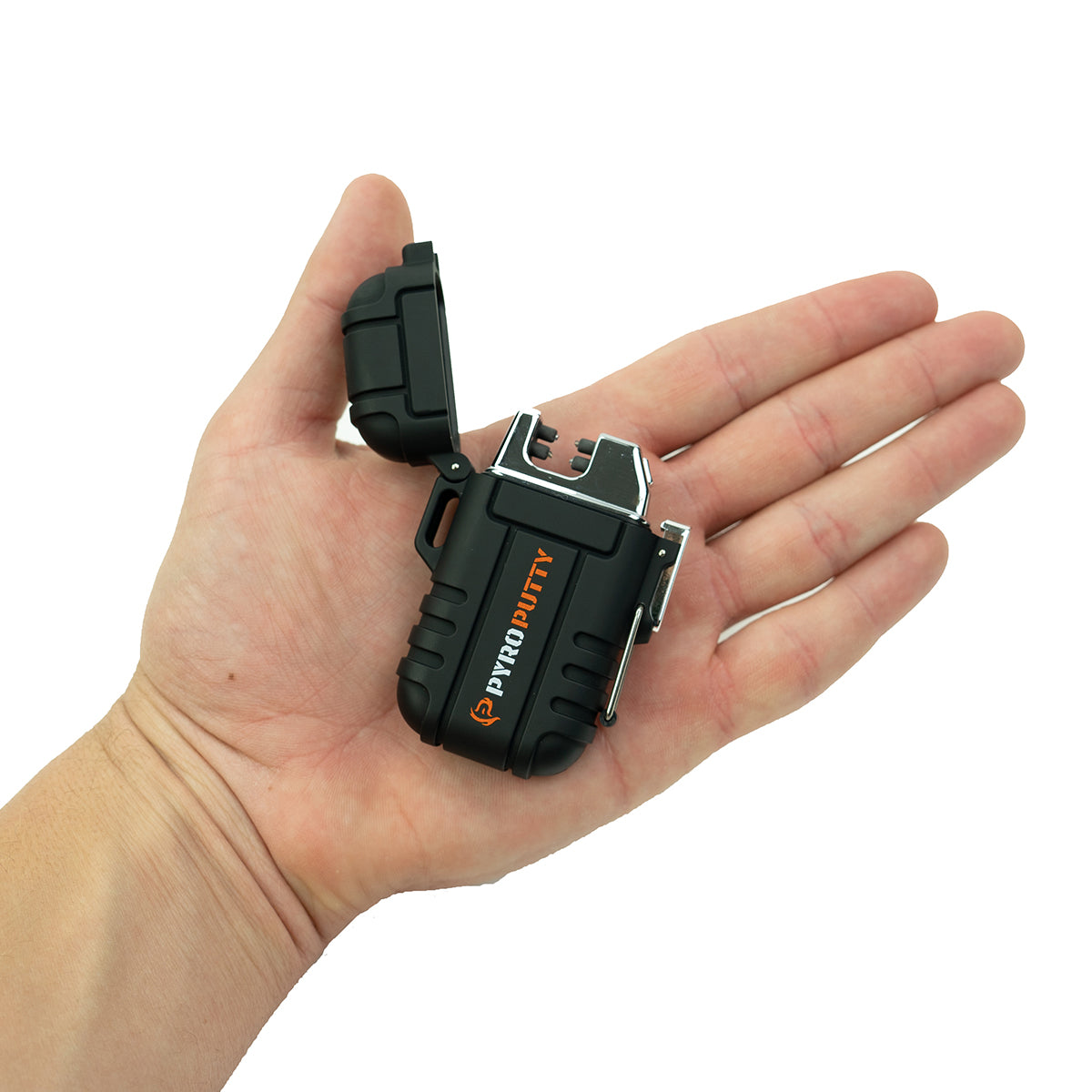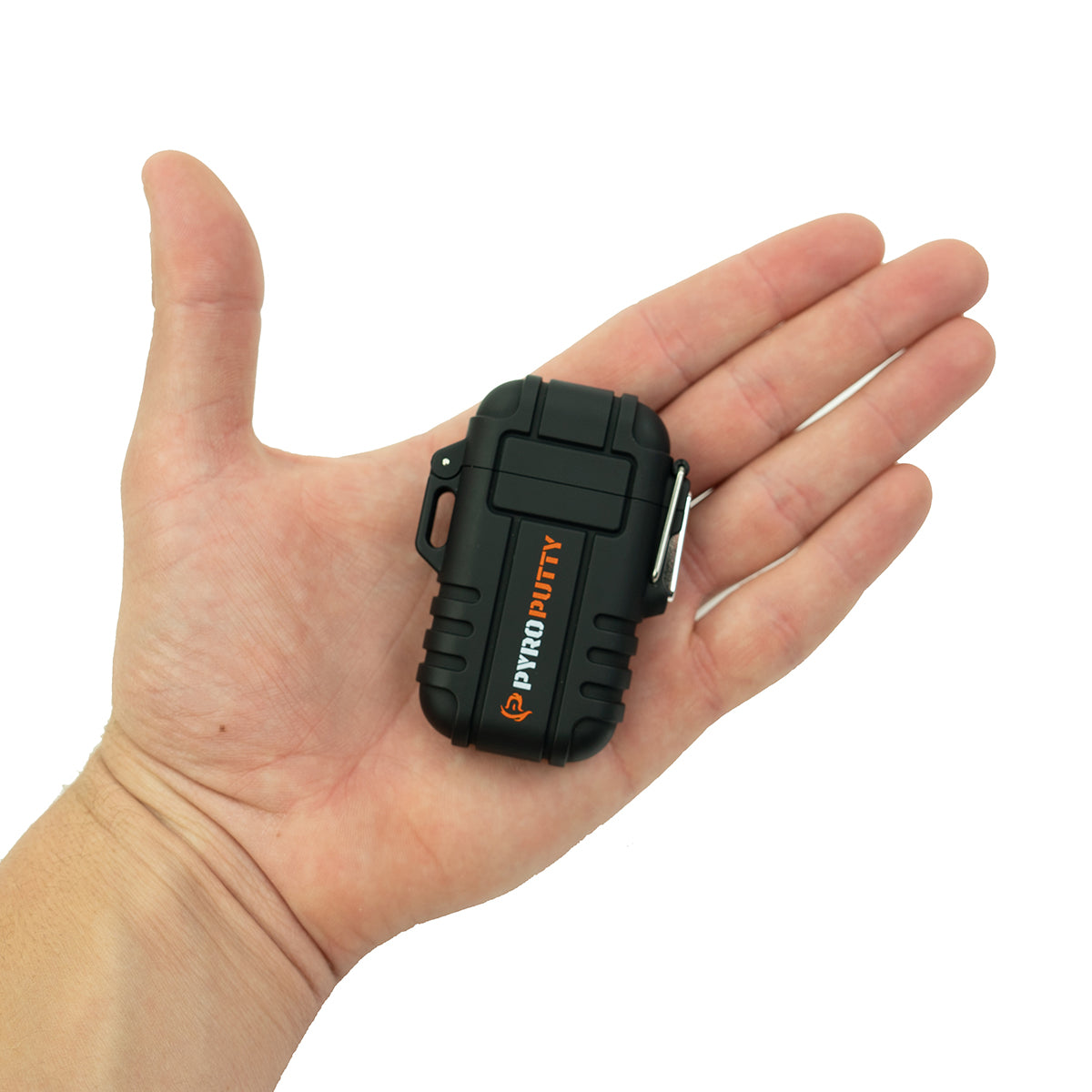 Don't let bad weather ruin your hunt, and never worry about those cheap plastic lighters again. With the Pyro Putty Lighter, you can build a fire in only minutes, pair it with Pyro Putty for a waterproof, weatherproof survival fire. The best part is it's also rechargeable, but with up to 300 lights on one charge, you'll only have to charge once per season! Rather than using fuel and a spark to generate a flame this lighter uses a powerful electric dual-arc beam that will instantly light pyro putty on fire. The lighter comes with a small case of Pyro Putty's Winter Blend and a USB charging cord that you can use to recharge your lighter.