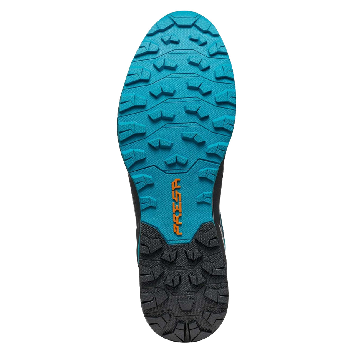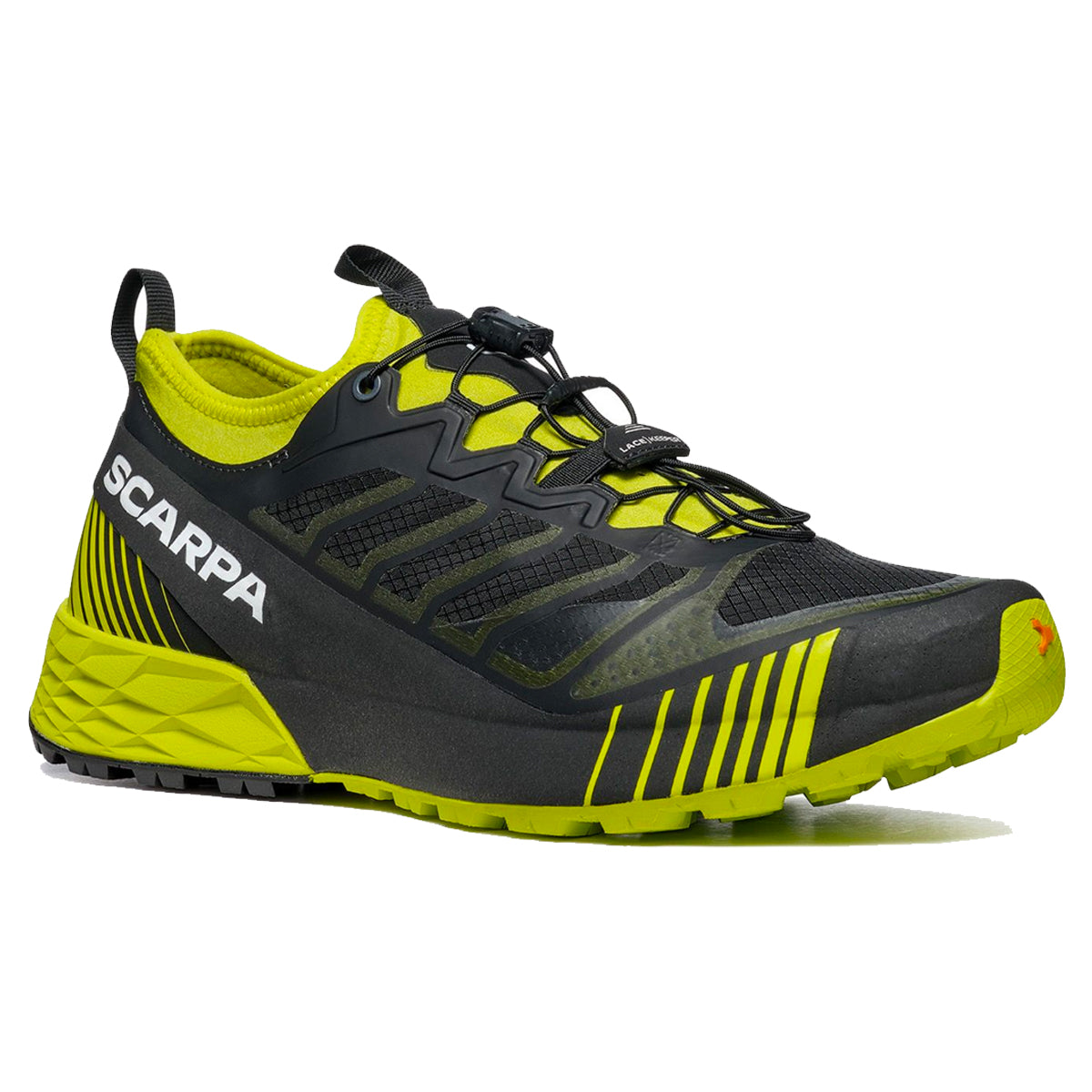 Highly durable and technically precise, the lightweight Ribelle Run is the ideal choice for short to medium-distance training and racing in rugged, rocky terrain. The upper is mesh and welded PU that is reinforced with a translucent ripstop for extra abrasion resistance. A climbing-inspired, full-perimeter TPU rand provides more structure and a high level of protection. The fit is more precise due to a medium width last that is slightly lower volume, giving it a precise feel and allowing secure navigation of technical trails. This fit is further enhanced by the Sock-Fit Slip-On construction, where the ankle collar is integrated with the tongue in a stretch fabric, reducing bulk and sealing out trail debris.