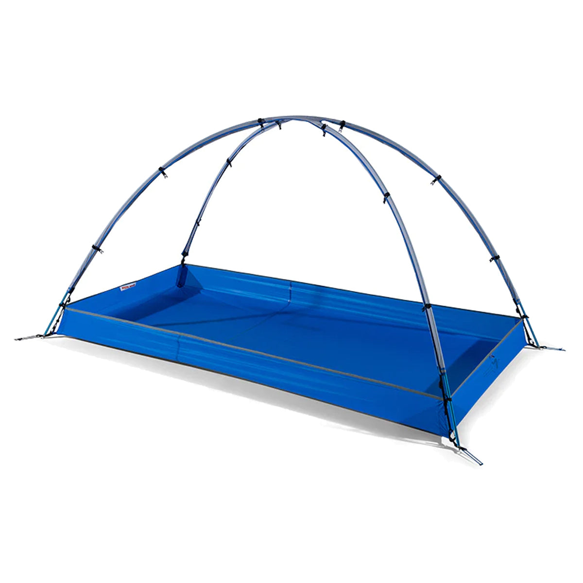 The Sky Solus 1P Tub Footprint allows you to transform your Sky Solus 1P Tent into an ultralight early season shelter. With the Tub Footprint you can utilize the WebTruss to set your poles independently without the Sky Solus 1P Tent body while maintaining the tremendous strength and stability of the Sky Solus 1P tent. Once the poles are set, attach the rainfly to complete the system and produce a completely waterproof early season shelter. The full coverage rainfly with the tub shaped footprint keeps water out in wet conditions and provides much more protection then standard flat footprints.