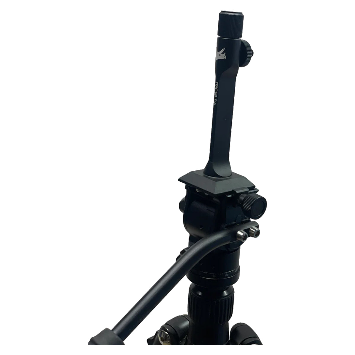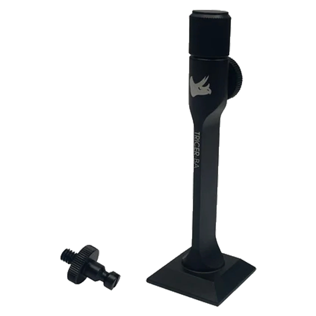 The Tricer Bino Adapter is a one-piece billet machined, Arca-Swiss compatible adapter that eliminates additional plates to mount binos to your tripod. Weighing only 2 ounces, this piece will save you a couple of ounces and does not sacrifice stability. The slim stem fits easily between the barrels of your largest binos. The bottom features a 1/4-20 thread allowing you to use a plate if desired. It also includes a second stud so you don't have to purchase an extra for your other pair of binoculars. The easy on/off of the stem allows you to easily switch from your 8's or 10's to the 15's to confirm antler characteristics. This Bino adapter allows you to ditch the extra plates, screws, and Allen keys and carry one piece saving you ounces.