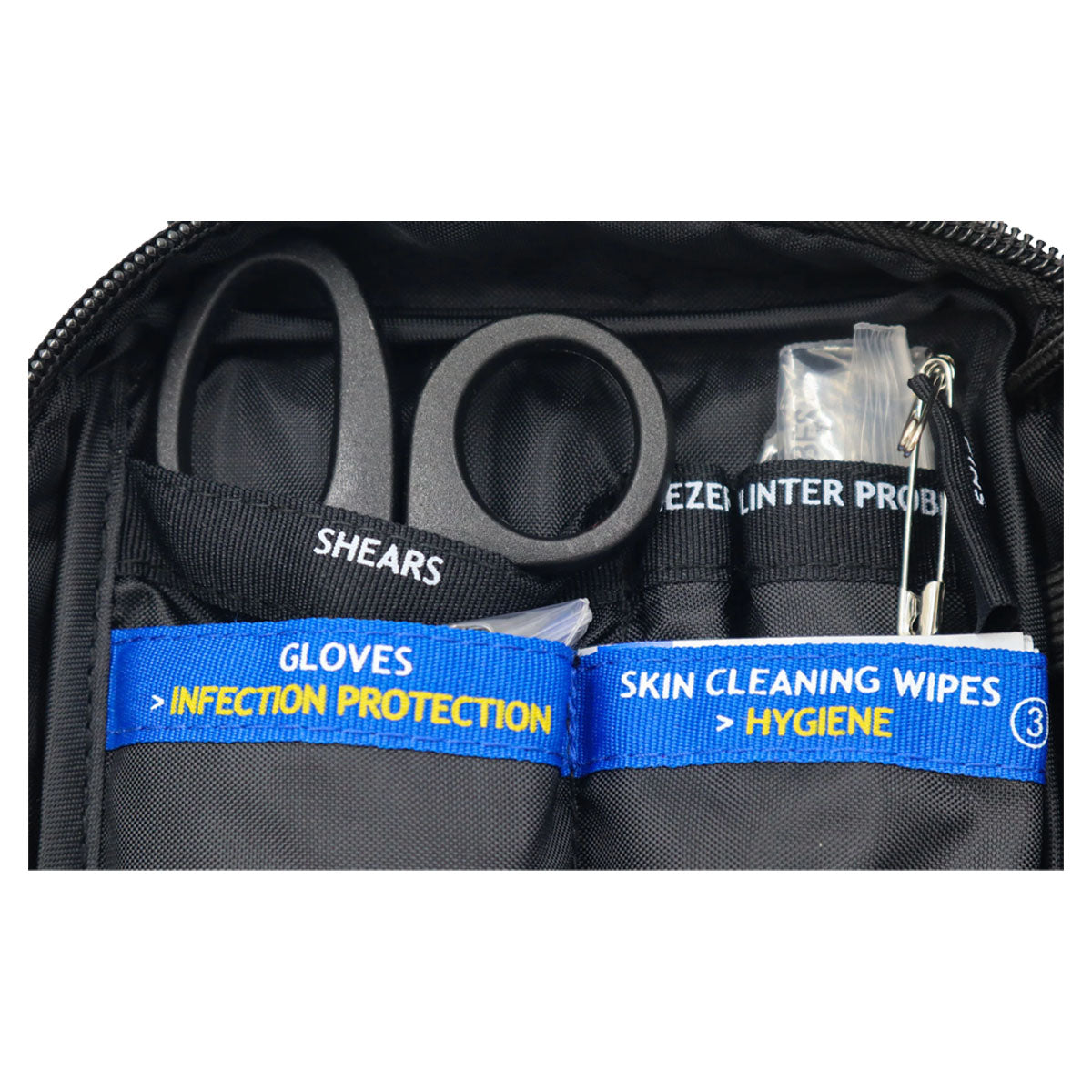 A perfect solution for your truck, campsite, or backcountry pack. This compact bag features a robust collection of high quality first aid products in an extremely durable and stylish package. The bag itself is durable, water resistant, coated 600D Oxford polyester. Featuring double stitched handles and upgraded zippers, this kit is ready for anything and can be wiped down with disinfectant liquid when needed. An included MOLLE System allows for attachment to nearly anything. In addition to the extensive selection of first aid items, the First Aid Pro contains CPR instructions to support your first aid training in the case of a life-threatening emergency.