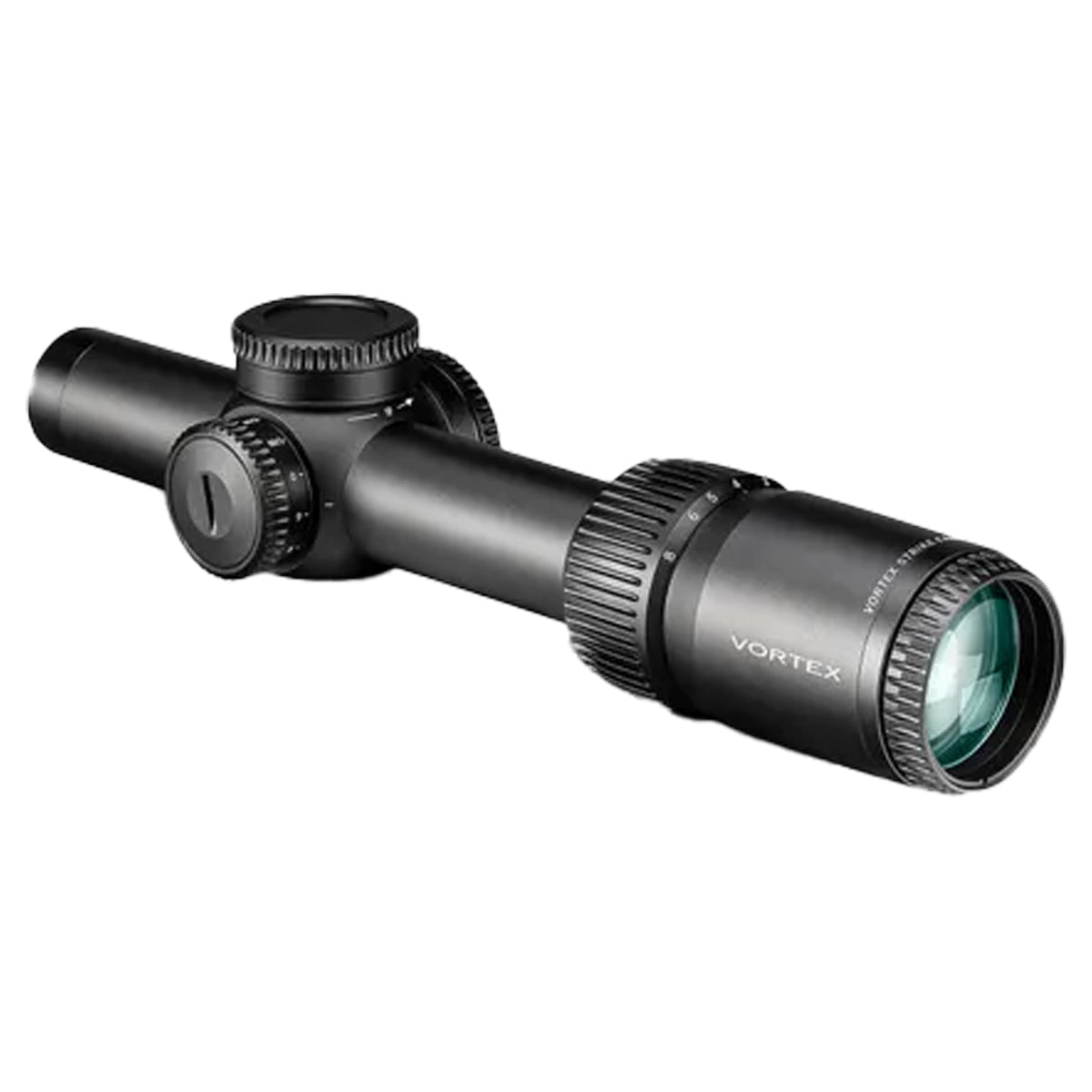 A true 1x on the low end, the Vortex Strike Eagle can zoom rapidly to let shooters engage on targets near and far. The EBR-8 FFP, glass-etched, illuminated reticle aids in rapid shooting while also being applicable in shooting situations out to 600 yards. With that added thread in throw lever, you will be on target even faster, shot after shot. This scope will be perfect for your small caliber and AR platforms for your predator hunting.