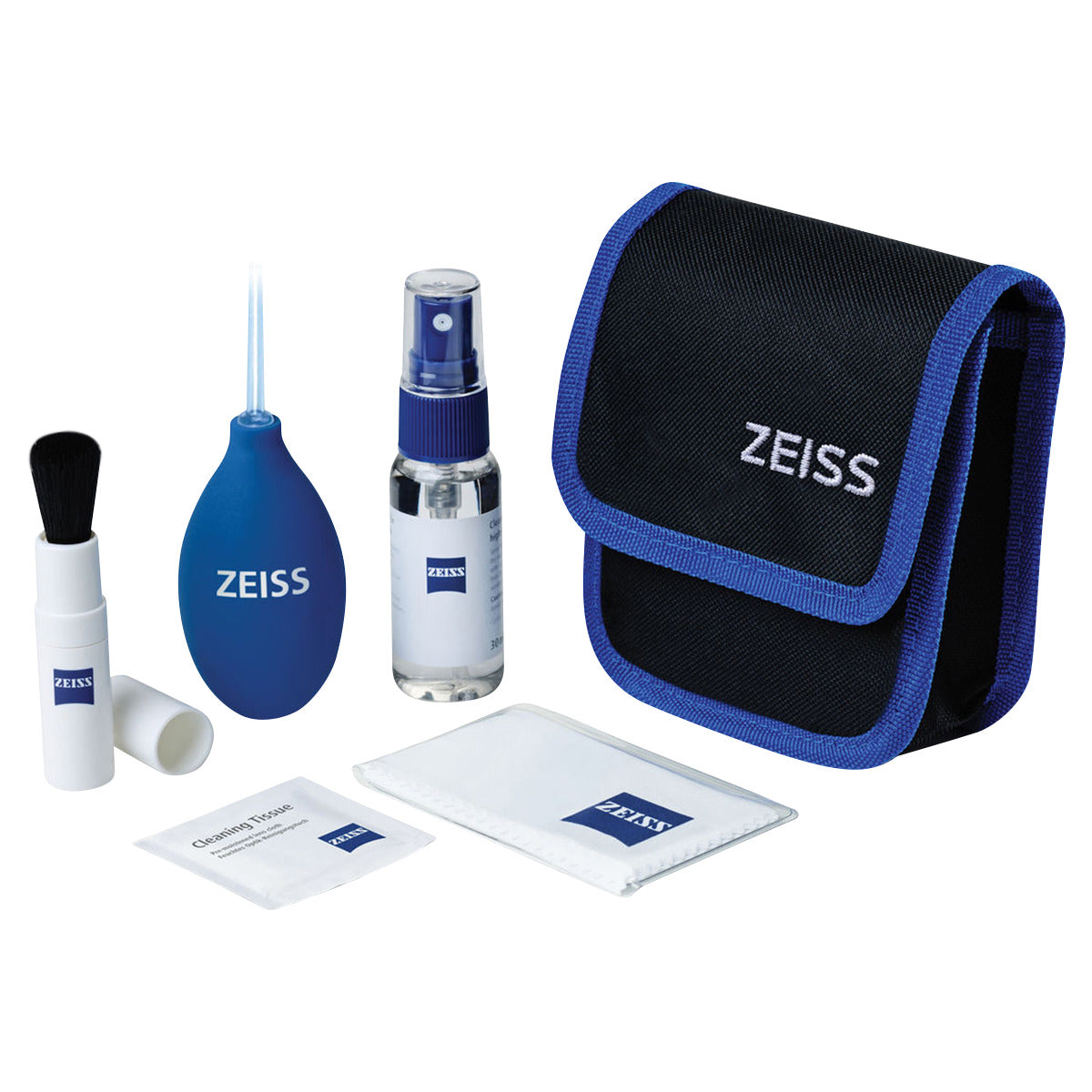 This Lens Cleaning Kit from Zeiss is a complete solution for cleaning valuable optics such as camera lenses, eyeglasses, telescopes, or spotting scopes. Both wet and dry cleaning tools are provided. For blowing the dust off an optical surface, the air blaster can be used, while the retractable lipstick-style cleaning brush can dislodge more stubborn dirt or dust particles. When a thorough wet cleaning is required, a 1 oz bottle of cleaning fluid or ten, individually-wrapped pre-moistened lens wipes are available. Designed for single-use, these wipes come in individual, disposable packets. They can be stored in a camera bag, glove compartment, or lens case for whenever they may be needed. The non-abrasive, 7.1 x 7.1-inch microfiber cloth can be used after applying fluid or one of the pre-moistened wipes in order to complete the cleaning process and ensure that no streaks or spots remain. It can also be used on its own to effectively remove smudges. A fabric travel case is also included to hold the contents of the entire kit.